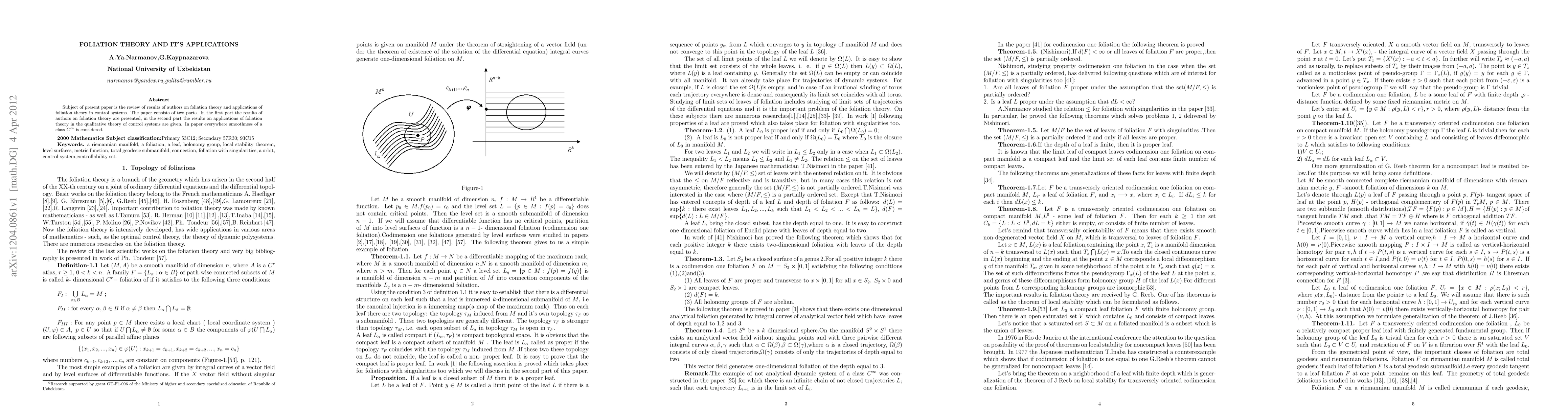 This paper reviews foliation theory and its applications in control systems, focusing on smoothness of C^µ functions. It presents key findings on the theory's applications in qualitative control systems.
