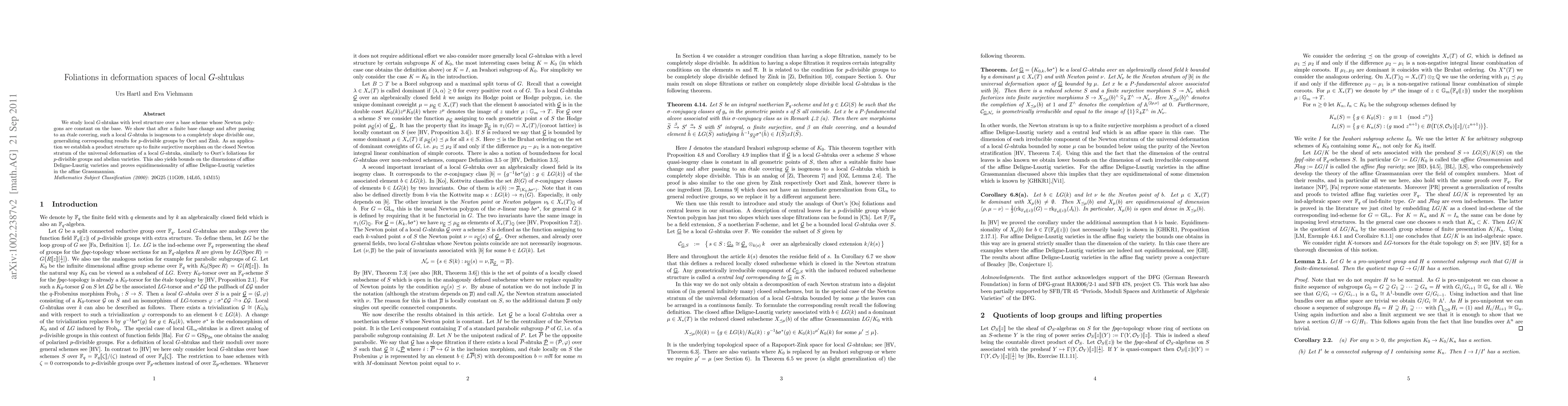 We study local G-shtukas with level structure over a base scheme whose Newton polygons are constant on the base. We show that after a finite base change and after passing to an \'etale covering, such a local G-shtuka is isogenous to a completely slope divisible one, generalizing corresponding results for p-divisible groups by Oort and Zink. As an application we establish a product structure up to finite morphism on the closed Newton stratum of the universal deformation of a local G-shtuka, similarly to Oort's foliations for p-divisible groups and abelian varieties. This also yields bounds on the dimensions of affine Deligne-Lusztig varieties and proves equidimensionality of affine Deligne-Lusztig varieties in the affine Grassmannian.