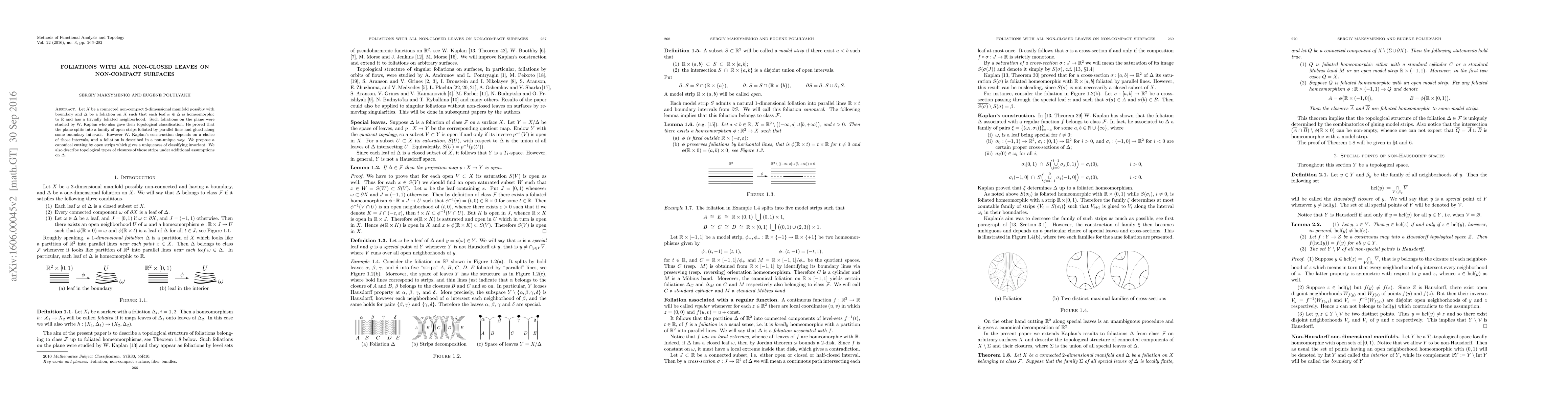 Researchers propose a canonical method to cut open strips on non-compact surfaces with non-closed leaves, providing a unique way to classify foliations, and describe the topological types of closures of those strips.