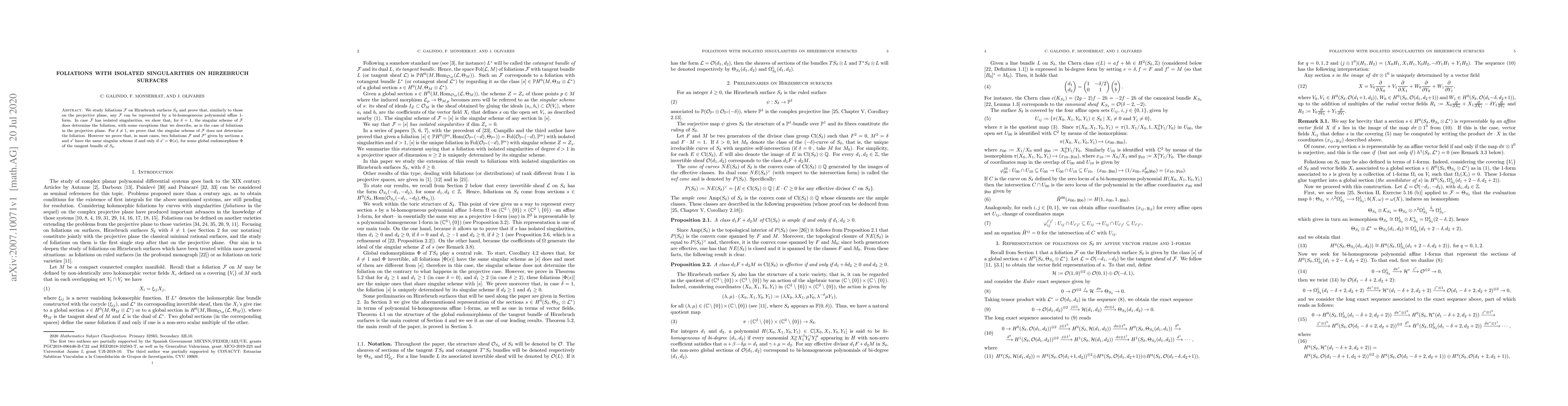 This paper investigates foliations on Hirzebruch surfaces, demonstrating that they can be represented by bi-homogeneous polynomial affine 1-forms. For foliations with isolated singularities, it shows that the singular scheme determines the foliation for $\delta=1$, but not for $\delta \neq 1$, except under specific transformations.