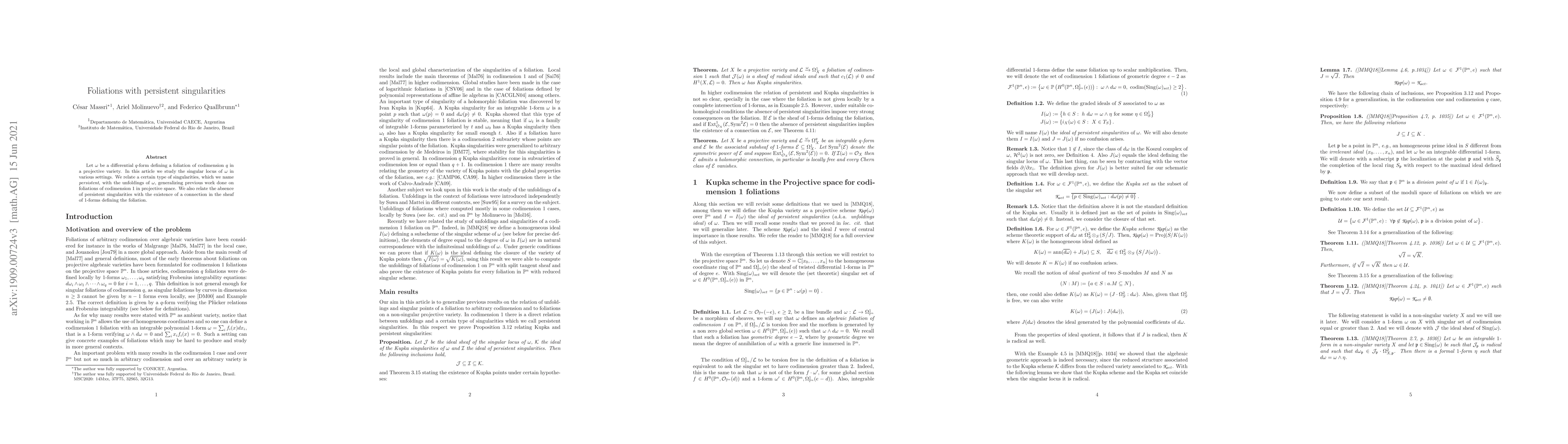 Let $\omega$ be a differential $q$-form defining a foliation of codimension $q$ in a projective variety. In this article we study the singular locus of $\omega$ in various settings. We relate a certain type of singularities, which we name \emph{persistent}, with the unfoldings of $\omega$, generalizing previous work done on foliations of codimension $1$ in projective space. We also relate the absence of persistent singularities with the existence of a connection in the sheaf of $1$-forms defining the foliation. In the latter parts of the article we extend some of these results to toric varieties by making computations on the Cox ring and modules over this ring.