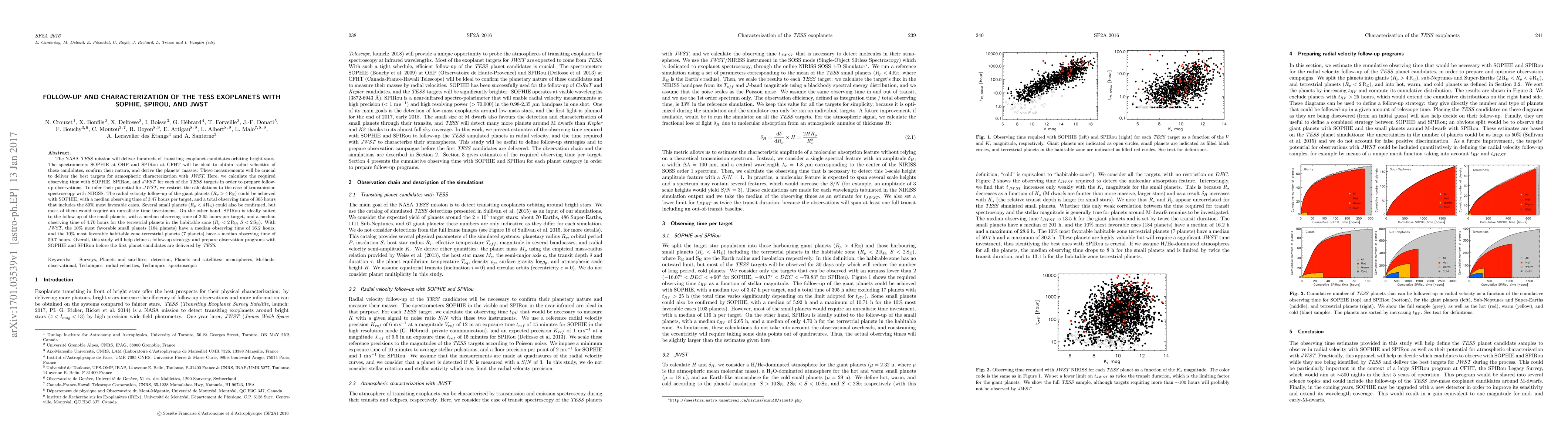 This paper outlines a strategy for confirming and characterizing exoplanets discovered by NASA's TESS mission using SOPHIE, SPIRou, and JWST. It estimates the observing time required for each method, revealing that SOPHIE is best for giant planets, SPIRou for smaller planets, and JWST for atmospheric characterization of the most promising candidates.