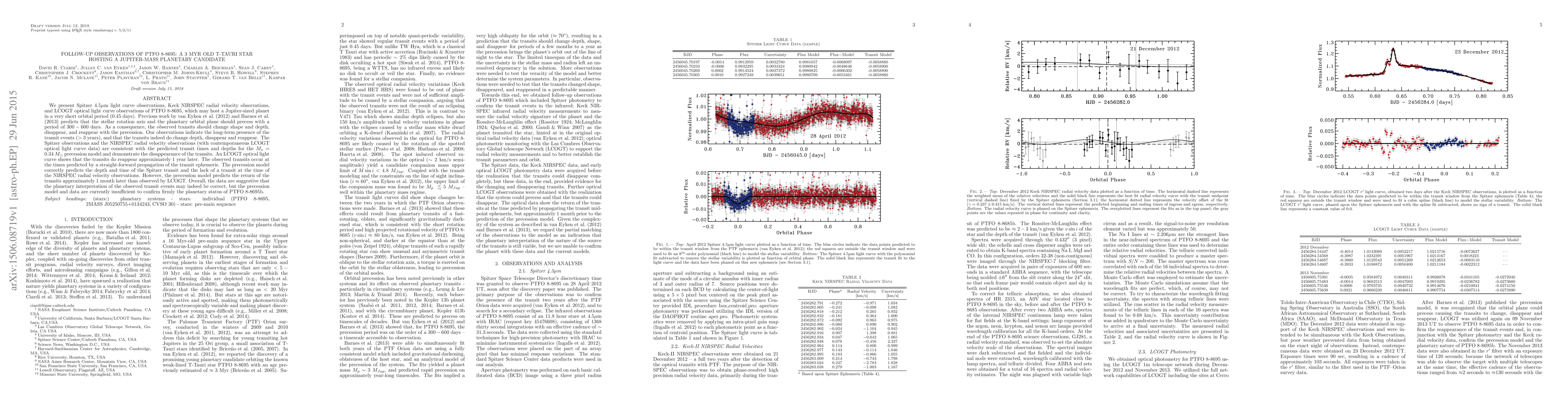 The study observes PTFO 8-8695, a young star with a suspected Jupiter-mass planetary companion in a short orbit. Using Spitzer, Keck NIRSPEC, and LCOGT data, researchers found that transits change in depth, disappear, and reappear over time, aligning with a precession model. However, slight discrepancies in transit return timing suggest the planetary status of PTFO 8-8695b remains unconfirmed.