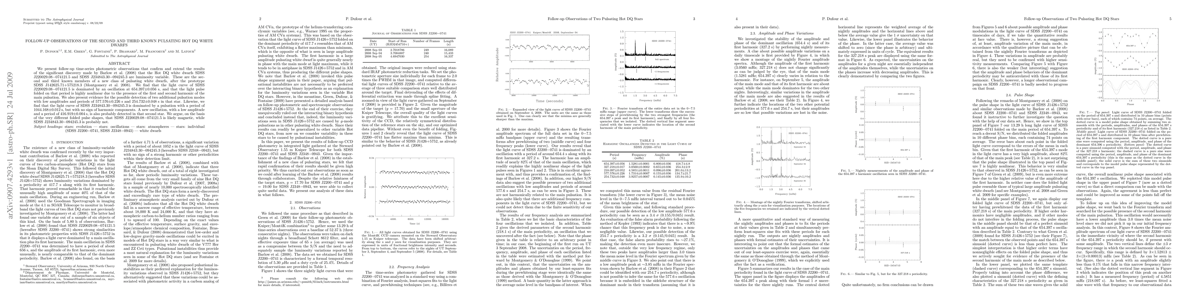 We present follow-up time-series photometric observations that confirm and extend the results of the significant discovery made by Barlow et al.(2008) that the Hot DQ white dwarfs SDSS J220029.08-074121.5 and SDSS J234843.30-094245.3 are luminosity variable. These are the second and third known members of a new class of pulsating white dwarfs, after the prototype SDSS J142625.71+575218.3 (Montgomery et al. 2008). We find that the light curve of SDSS J220029.08-074121.5 is dominated by an oscillation at 654.397+-0.056 s, and that the light pulse folded on that period is highly nonlinear due to the presence of the first and second harmonic of the main pulsation. We also present evidence for the possible detection of two additional pulsation modes with low amplitudes and periods of 577.576+-0.226 s and 254.732+-0.048 s in that star. Likewise, we find that the light curve of SDSS J234843.30-094245.3 is dominated by a pulsation with a period of 1044.168+-0.012 s, but with no sign of harmonic components. A new oscillation, with a low amplitude and a period of 416.919+-0.004 s, is also probably detected in that second star. We argue, on the basis of the very different folded pulse shapes, that SDSS J220029.08-074121.5 is likely magnetic, while SDSS J234843.30-094245.3 is probably not.