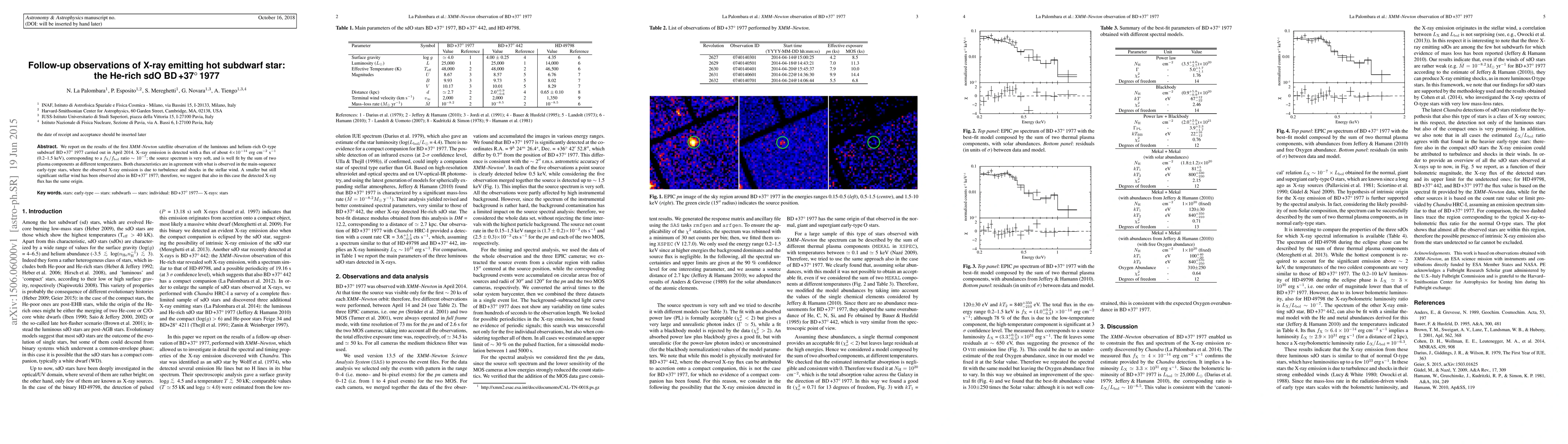 We report on the results of the first XMM-Newton satellite observation of the luminous and helium-rich O-type subdwarf BD +37{\deg} 1977 carried out in April 2014. X-ray emission is detected with a flux of about 4*10^(-14) erg/cm2/s (0.2-1.5 keV), corresponding to a f_X/f_bol ratio about 10^(-7); the source spectrum is very soft, and is well fit by the sum of two plasma components at different temperatures. Both characteristics are in agreement with what is observed in the main-sequence early-type stars, where the observed X-ray emission is due to turbulence and shocks in the stellar wind. A smaller but still significant stellar wind has been observed also in BD +37{\deg} 1977; therefore, we suggest that also in this case the detected X-ray flux has the same origin.