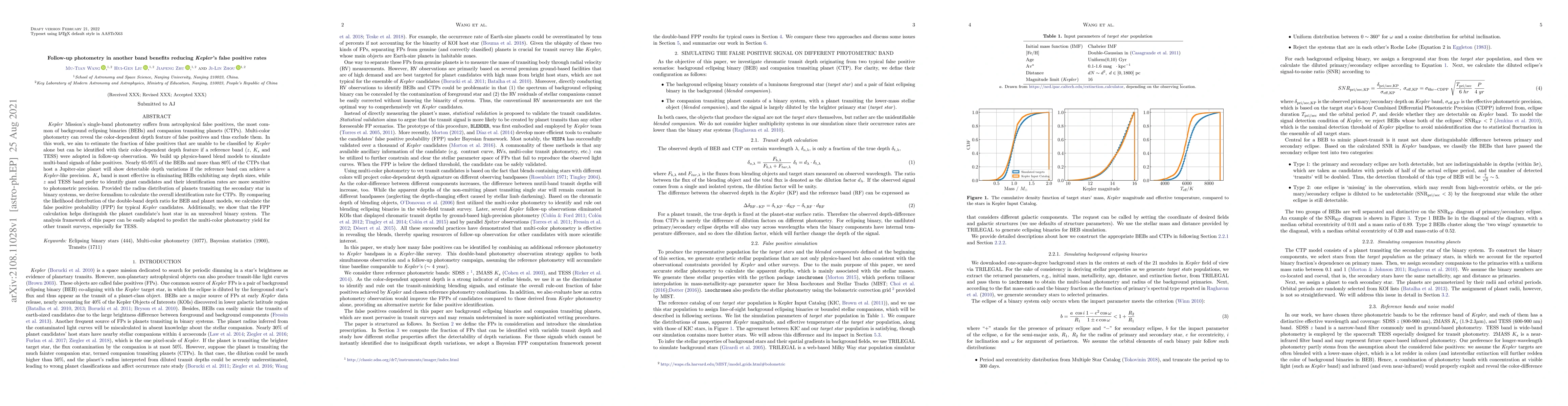 This paper investigates how multi-color photometry can reduce false positives in the Kepler Mission's single-band data, showing that nearly 65-95% of background eclipsing binaries and over 80% of companion transiting planets can be identified using follow-up observations in the z, Ks, and TESS bands. The Ks band is most effective for eliminating background eclipsing binaries, while z and TESS bands are better for identifying giant planets, depending on photometric precision.
