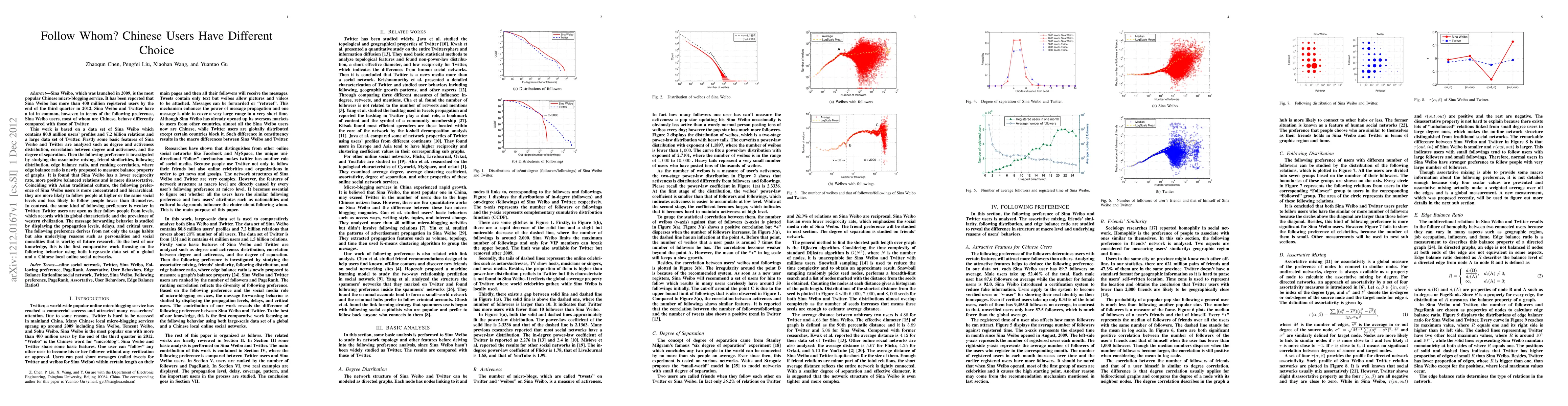 This study analyzes the following preferences of Sina Weibo users compared to Twitter, revealing that Sina Weibo users exhibit more hierarchical and concentrated following behaviors, likely influenced by Asian cultural norms, while Twitter users follow a more diverse range of individuals, reflecting global and Western influences.