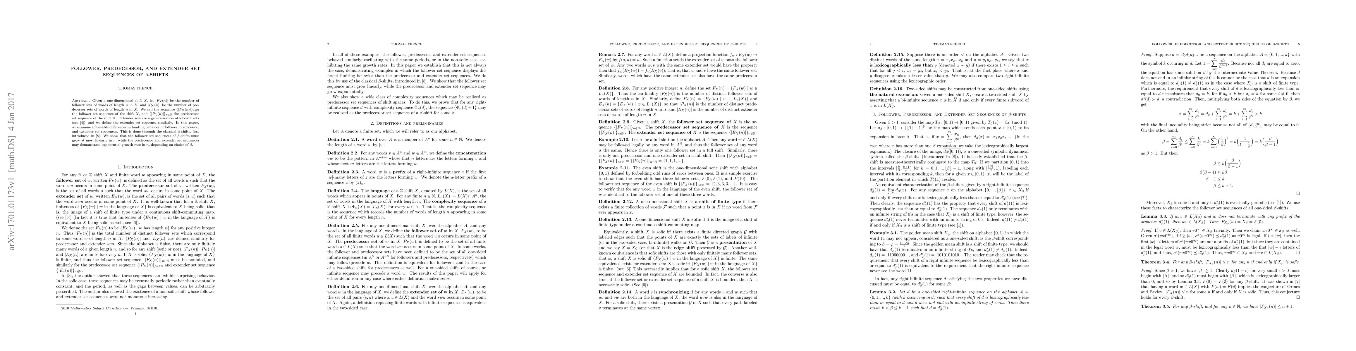 Research on beta-shifts shows that follower set sequences grow linearly in length, while predecessor and extender set sequences may grow exponentially.