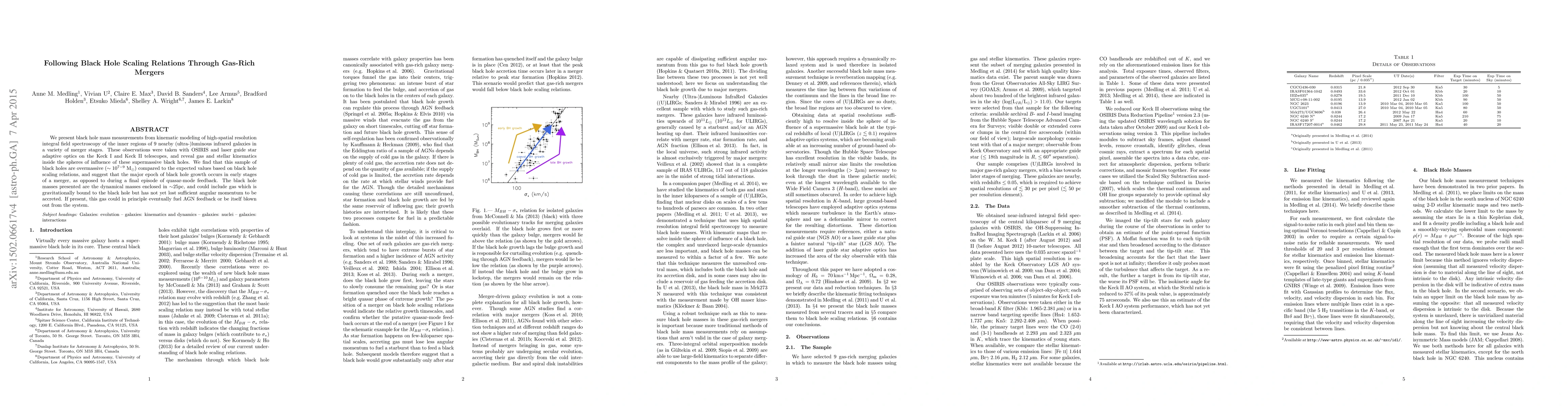 We present black hole mass measurements from kinematic modeling of high-spatial resolution integral field spectroscopy of the inner regions of 9 nearby (ultra-)luminous infrared galaxies in a variety of merger stages. These observations were taken with OSIRIS and laser guide star adaptive optics on the Keck I and Keck II telescopes, and reveal gas and stellar kinematics inside the spheres of influence of these supermassive black holes. We find that this sample of black holes are overmassive ($\sim10^{7-9}$ M$_{Sun}$) compared to the expected values based on black hole scaling relations, and suggest that the major epoch of black hole growth occurs in early stages of a merger, as opposed to during a final episode of quasar-mode feedback. The black hole masses presented are the dynamical masses enclosed in $\sim$25pc, and could include gas which is gravitationally bound to the black hole but has not yet lost sufficient angular momentum to be accreted. If present, this gas could in principle eventually fuel AGN feedback or be itself blown out from the system.