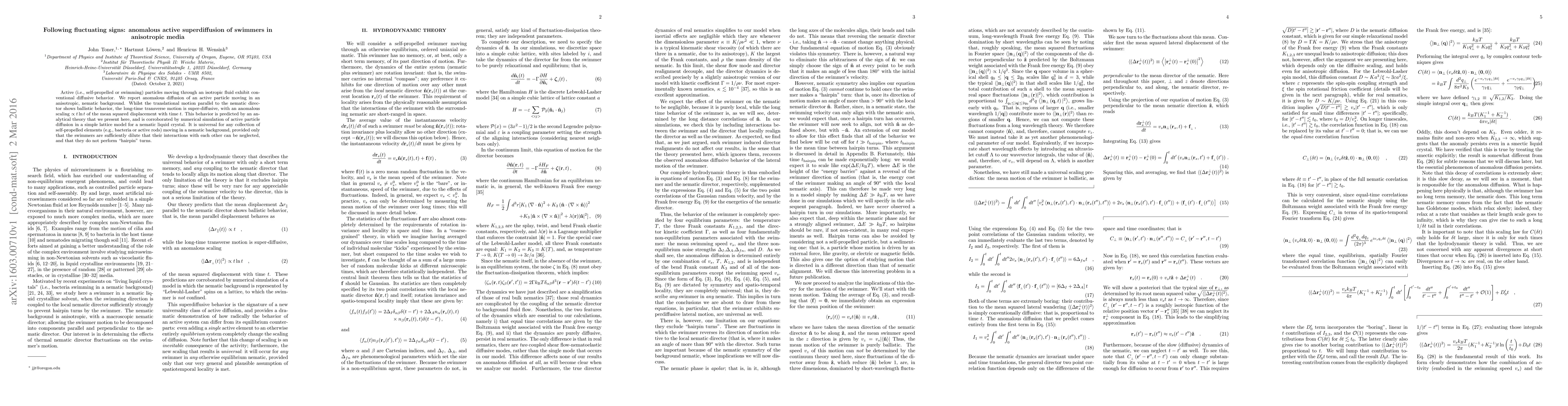 This paper reports on the anomalous active superdiffusion of self-propelled particles in anisotropic nematic media, where transverse motion exhibits a $\propto t \ln t$ scaling. The study is supported by an analytical theory and numerical simulations, revealing universal behavior for dilute self-propelled elements in nematic backgrounds.