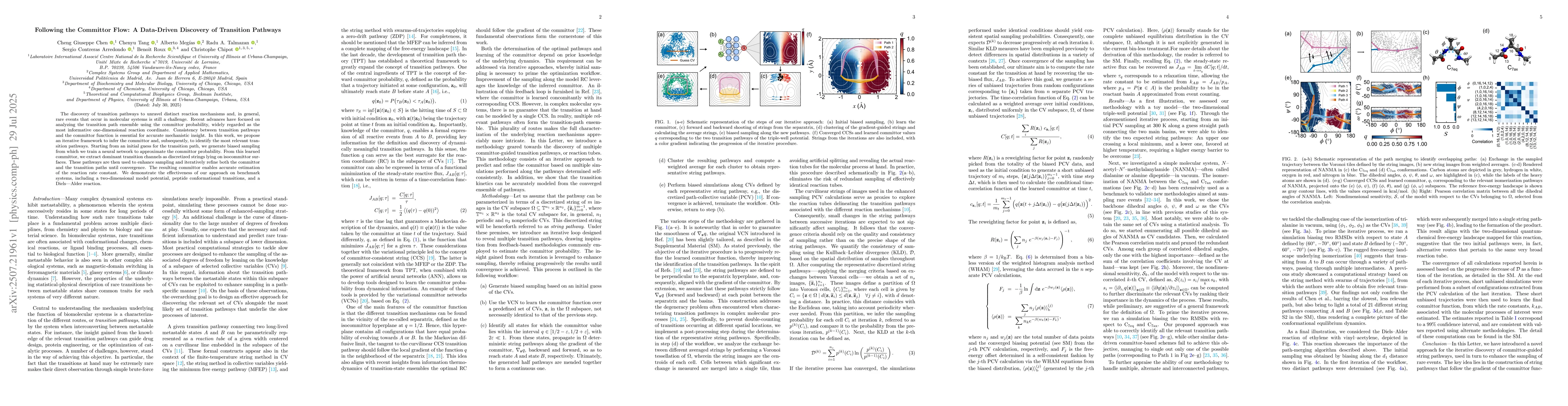The paper proposes an iterative framework to infer the committor probability and identify transition pathways in molecular systems. It uses biased sampling and a neural network to approximate the committor, extract dominant transition channels, and refine both the committor and transition paths until convergence.