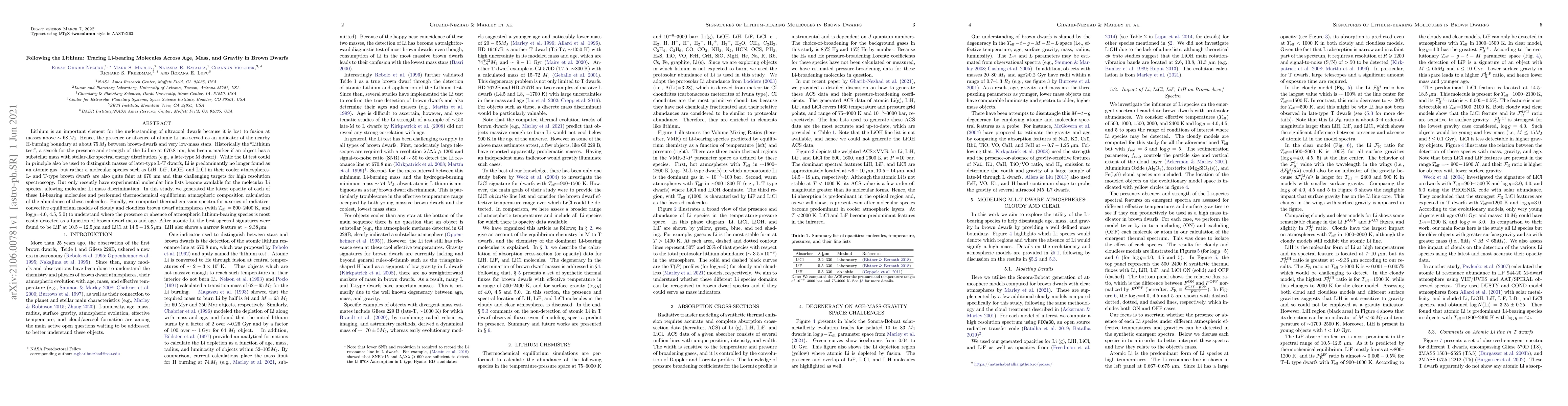 Lithium is an important element for the understanding of ultracool dwarfs because it is lost to fusion at masses above $\sim 68\, M_{\rm J}$. Hence, the presence or absence of atomic Li has served as an indicator of the nearby H-burning boundary at about $75\,M_{\rm J}$ between brown-dwarfs and very low-mass stars. Historically the "Lithium test", a search for the presence and strength of the Li line at 670.8 nm, has been a marker if an object has a substellar mass with stellar-like spectral energy distribution (e.g., a late-type M dwarf). While the Li test could in principle also be used to distinguish masses of later-type L-T dwarfs, Li is predominantly no longer found as an atomic gas, but rather a molecular species such as LiH, LiF, LiOH, and LiCl in their cooler atmospheres. L- and T-type brown dwarfs are also quite faint at 670 nm and thus challenging targets for high resolution spectroscopy. But only recently have experimental molecular line lists become available for the molecular Li species, allowing molecular Li mass discrimination. In this study, we generated the latest opacity of each of these Li-bearing molecules and performed thermochemical equilibrium atmospheric composition calculation of the abundance of these molecules. Finally, we computed thermal emission spectra for a series of radiative-convective equilibrium models of cloudy and cloudless brown dwarf atmospheres (with $T_{\rm eff}=$ 500--2400~K, and $\log g$=4.0, 4.5, 5.0) to understand where the presence or absence of atmospheric lithium-bearing species is most easily detected as a function of brown dwarf mass and age. After atomic Li, the best spectral signatures were found to be LiF at $10.5-12.5$~\micron and LiCl at $14.5-18.5$ $\micron$. LiH also shows a narrow feature at $\sim 9.38$ $\micron$.