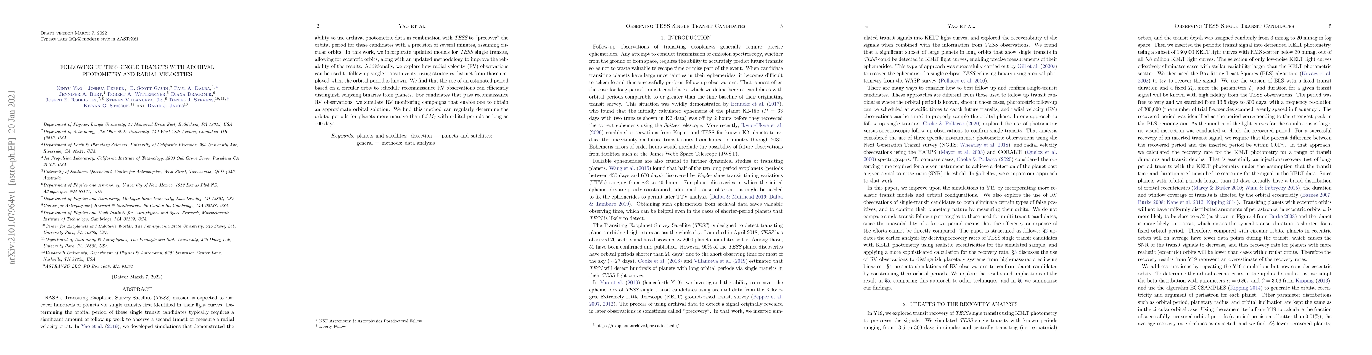 This paper refines methods to determine the orbital periods of exoplanet candidates discovered via single transits in TESS data by leveraging archival photometric data and radial velocity observations. It improves upon previous circular orbit models to accommodate eccentric orbits and demonstrates that estimated periods can guide efficient reconnaissance RV follow-up to distinguish eclipsing binaries from planets, with successful orbital period determinations for massive planets with long orbital periods.