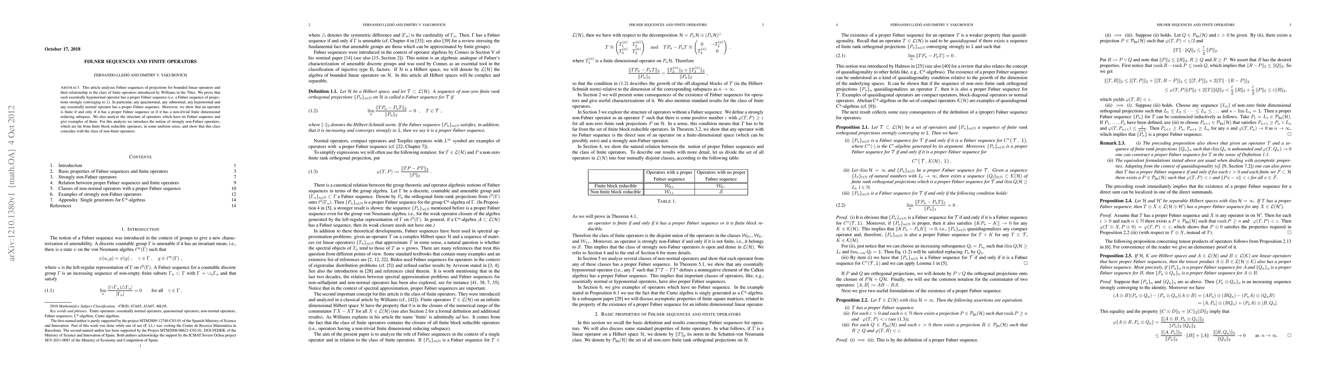 This article analyzes F\olner sequences of projections for bounded linear operators and their relationship to the class of finite operators introduced by Williams in the 70ies. We prove that each essentially hyponormal operator has a proper F\olner sequence (i.e. a F\olner sequence of projections strongly converging to 1). In particular, any quasinormal, any subnormal, any hyponormal and any essentially normal operator has a proper F\olner sequence. Moreover, we show that an operator is finite if and only if it has a proper F\olner sequence or if it has a non-trivial finite dimensional reducing subspace. We also analyze the structure of operators which have no F\olner sequence and give examples of them. For this analysis we introduce the notion of strongly non-F\olner operators, which are far from finite block reducible operators, in some uniform sense, and show that this class coincides with the class of non-finite operators.