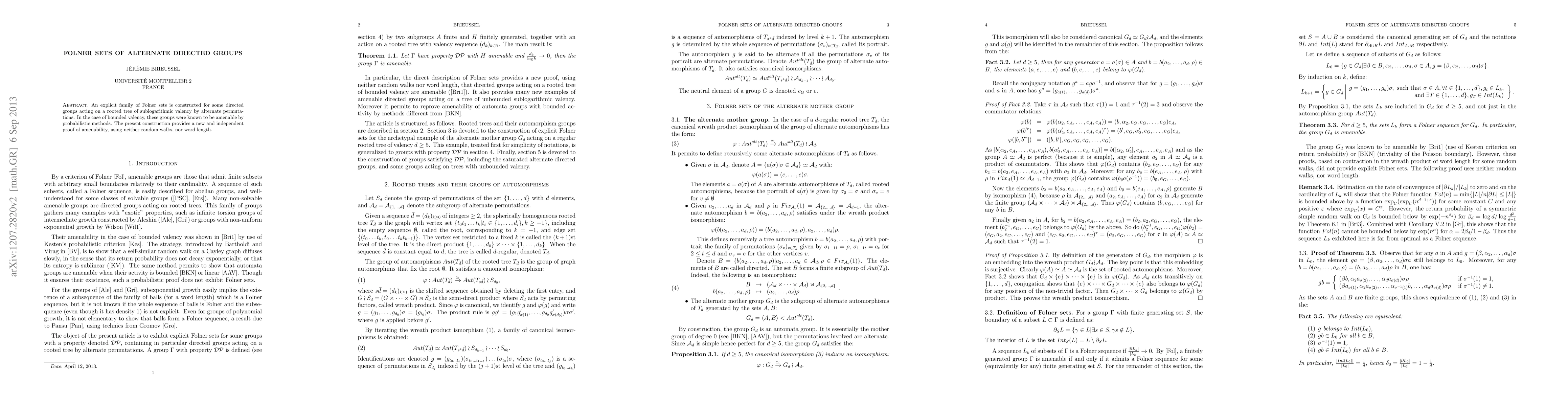 This paper constructs an explicit family of Folner sets for directed groups acting on a rooted tree with alternate permutations, providing a new proof of their amenability without relying on random walks or word length. This method offers an independent verification of the groups' amenability.