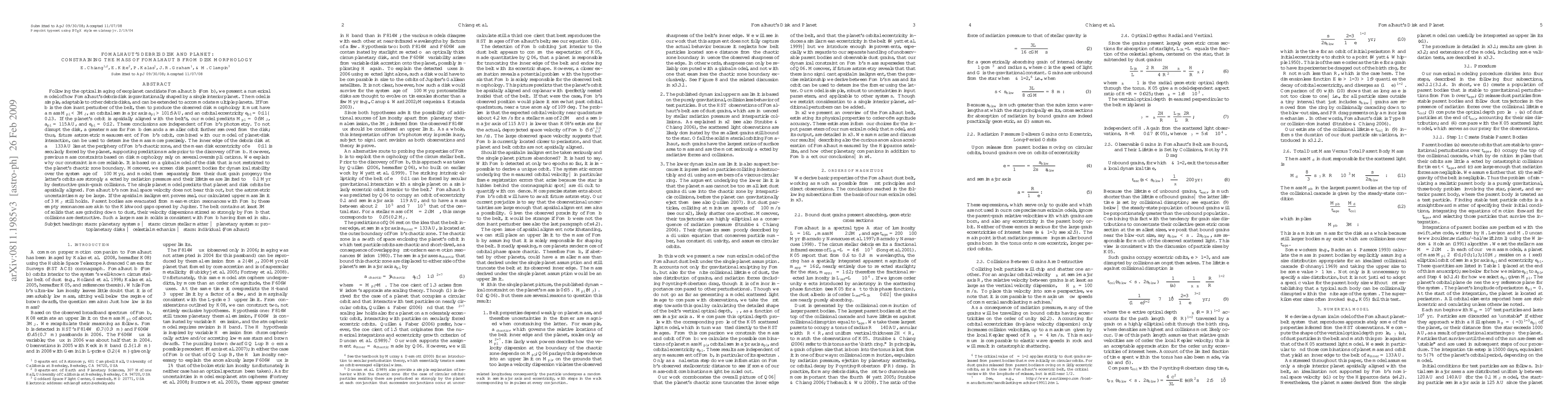 This paper models Fomalhaut's debris disk's morphology to constrain the mass of Fomalhaut b, finding it must be less than 3 Jupiter masses to match observations. The model, adaptable to other systems, predicts a mass of 0.5 Jupiter masses if the planet and disk are apsidally aligned.