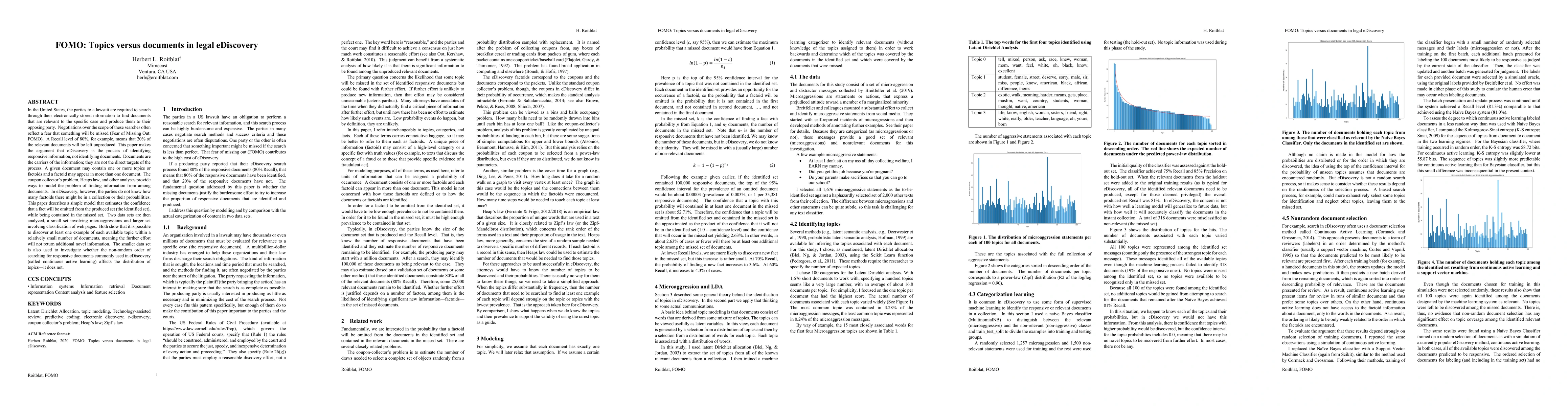 In the United States, the parties to a lawsuit are required to search through their electronically stored information to find documents that are relevant to the specific case and produce them to their opposing party. Negotiations over the scope of these searches often reflect a fear that something will be missed (Fear of Missing Out: FOMO). A Recall level of 80%, for example, means that 20% of the relevant documents will be left unproduced. This paper makes the argument that eDiscovery is the process of identifying responsive information, not identifying documents. Documents are the carriers of the information; they are not the direct targets of the process. A given document may contain one or more topics or factoids and a factoid may appear in more than one document. The coupon collector's problem, Heaps law, and other analyses provide ways to model the problem of finding information from among documents. In eDiscovery, however, the parties do not know how many factoids there might be in a collection or their probabilities. This paper describes a simple model that estimates the confidence that a fact will be omitted from the produced set (the identified set), while being contained in the missed set. Two data sets are then analyzed, a small set involving microaggressions and larger set involving classification of web pages. Both show that it is possible to discover at least one example of each available topic within a relatively small number of documents, meaning the further effort will not return additional novel information. The smaller data set is also used to investigate whether the non-random order of searching for responsive documents commonly used in eDiscovery (called continuous active learning) affects the distribution of topics-it does not.