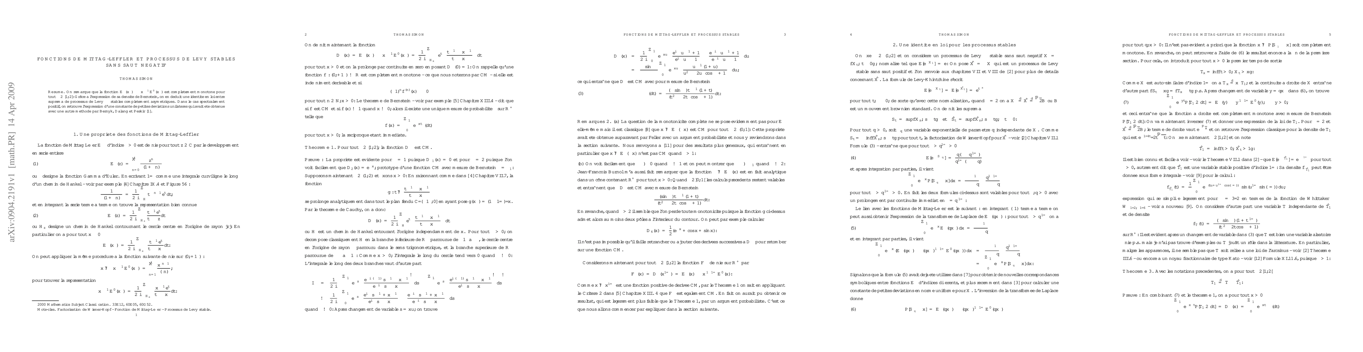 It is noticed that a certain transform of the Mittag-Leffler function Ea is completely monotone for a in [1,2]. Using the explicit expressions of its Bernstein density, an identity in law between suprema of completely asymmetric Levy a-stable processes. In the spectrally positive case, we retrieve the exact expression of a unilateral small deviation constant which had been previously obtained by a different method by Bernyk, Dalang and Peskir.