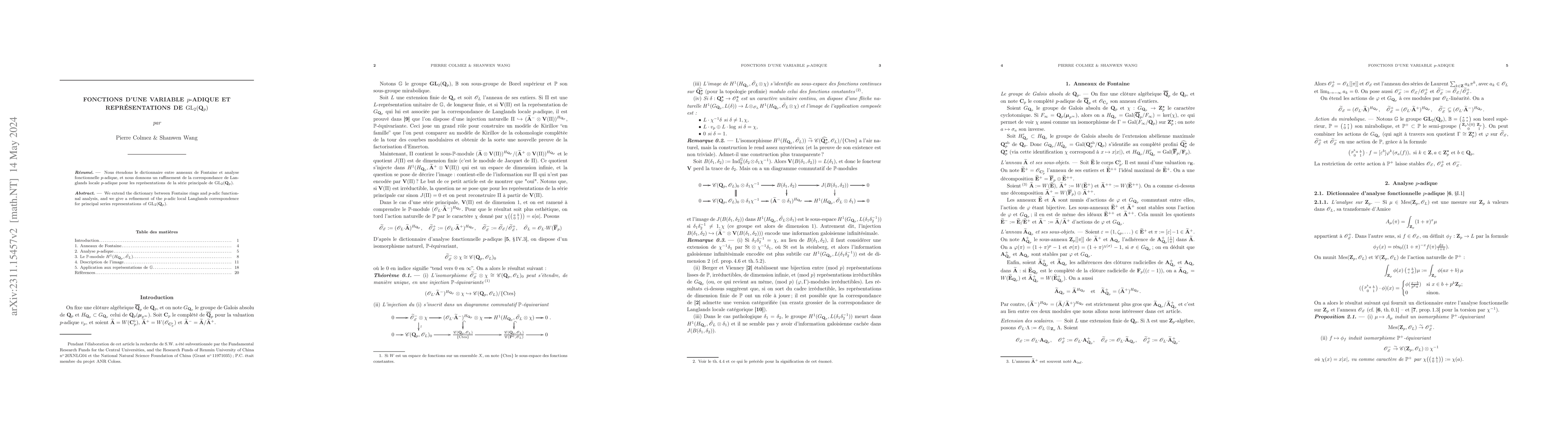 We extend the dictionary between Fontaine rings and $p$-adic functionnal analysis, and we give a refinement of the $p$-adic local Langlands correspondence for principal series representations of ${\rm GL}_2(\mathbf{Q}_p)$.