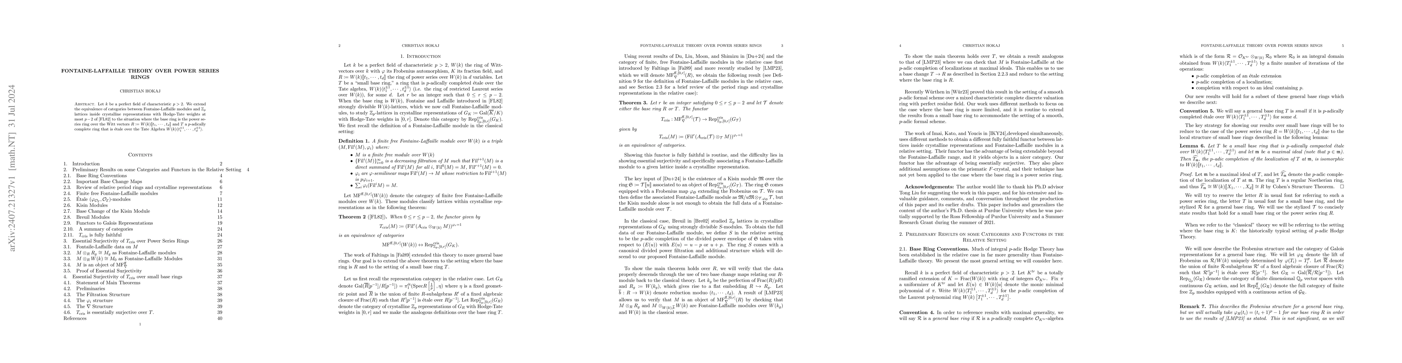 This paper extends the Fontaine-Laffaille theory equivalence to power series rings over Witt vectors, specifically focusing on $p$-adically complete rings that are \'etale over the Tate algebra, enhancing the understanding of crystalline representations with Hodge-Tate weights.