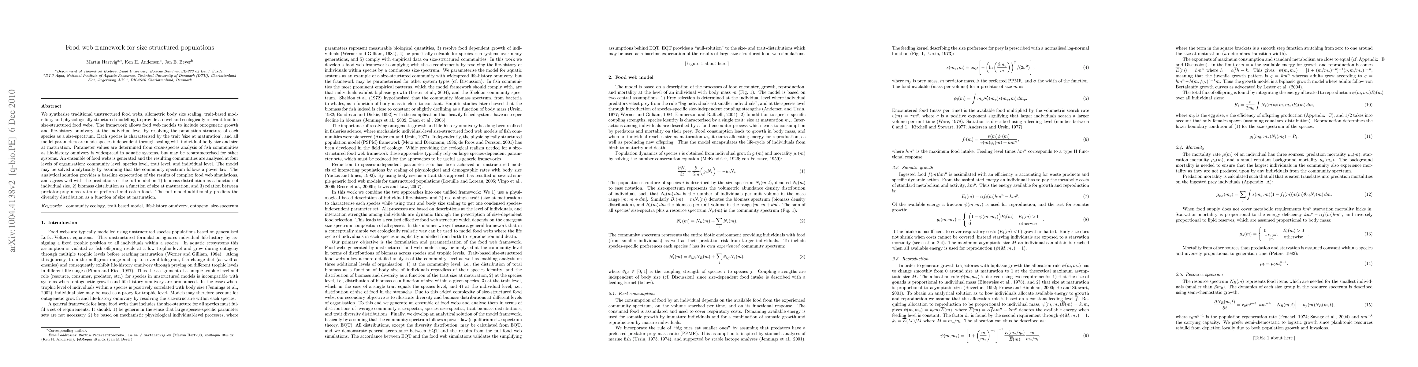 The research synthesizes traditional unstructured food webs, allometric body size scaling, trait-based modelling, and physiologically structured modelling to create a framework for size-structured populations. It characterizes each species by 'size at maturation' and makes all model parameters species-independent through scaling with individual body size and size at maturation.