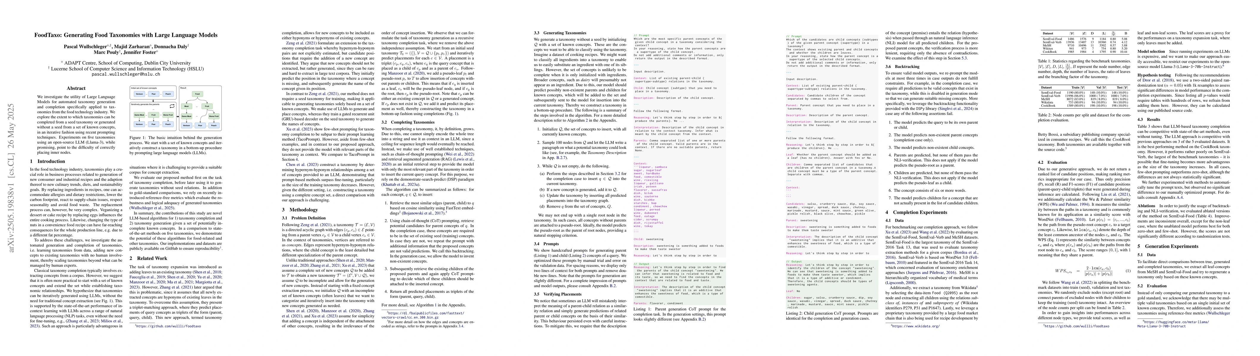The paper presents a novel approach to using LLMs for generating and completing food taxonomies, showcasing their potential in specialized domains.