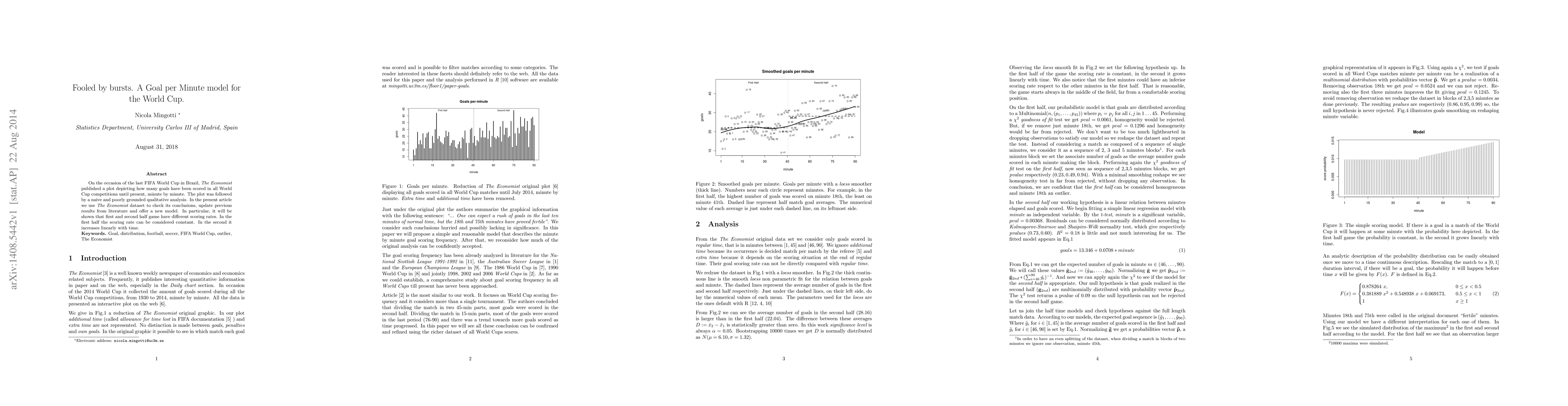On the occasion of the last FIFA World Cup in Brazil, The Economist published a plot depicting how many goals have been scored in all World Cup competitions until present, minute by minute. The plot was followed by a naive and poorly grounded qualitative analysis. In the present article we use The Economist dataset to check its conclusions, update previous results from literature and offer a new model. In particular, it will be shown that first and second half game have different scoring rates. In the first half the scoring rate can be considered constant. In the second it increases linearly with time.