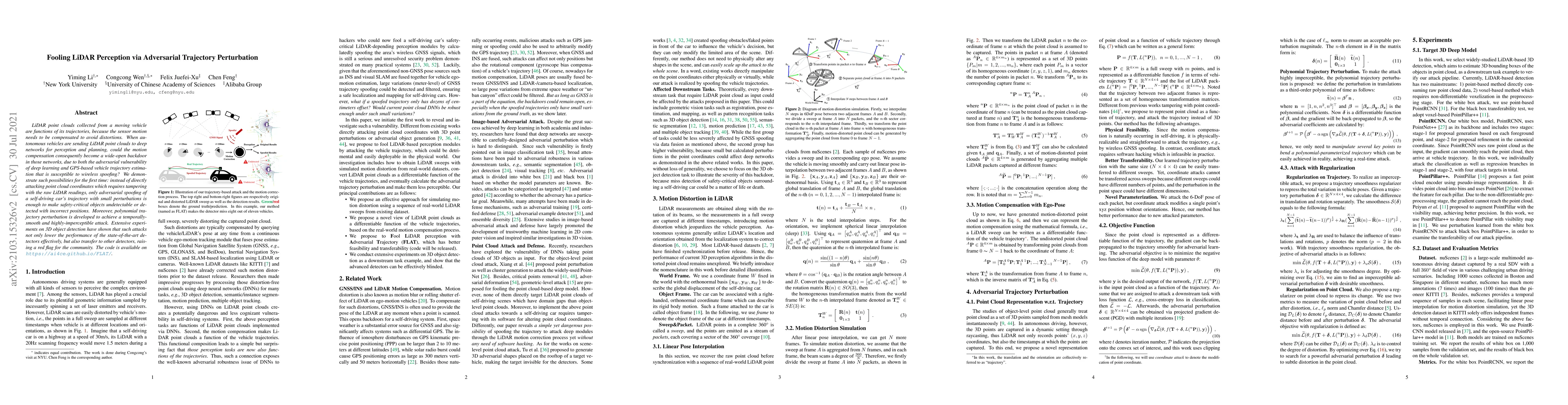 This paper explores how adversarial perturbations in LiDAR-based vehicle trajectory estimation can fool deep learning models used in autonomous driving for perception and planning. It demonstrates that small, imperceptible trajectory changes can lead to incorrect detections of safety-critical objects, highlighting a significant vulnerability in current systems.