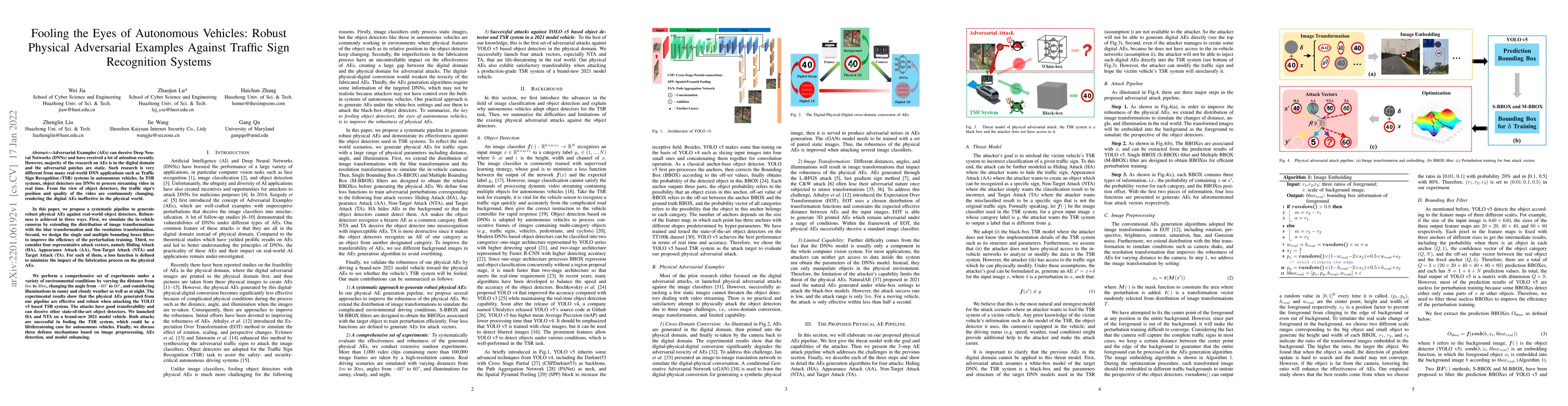 This paper proposes a systematic method to generate robust physical adversarial examples (AEs) that can deceive traffic sign recognition systems in autonomous vehicles. The authors demonstrate the effectiveness of their approach through comprehensive experiments under various environmental conditions, showing that their AEs can successfully fool state-of-the-art object detectors and pose potential safety risks. They also discuss potential defense strategies against such attacks.