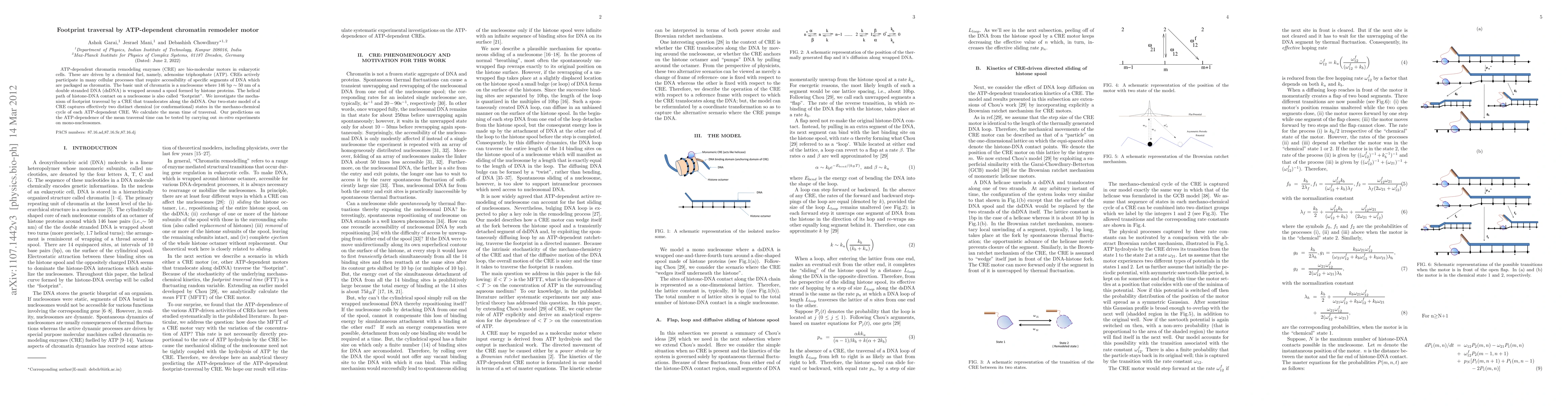 This paper investigates the mechanism of ATP-dependent chromatin remodelers traversing the DNA "footprint" on nucleosomes, proposing a two-state model to capture their mechano-chemical cycle and predicting the mean traversal time, which can be validated through in-vitro experiments on mono-nucleosomes.