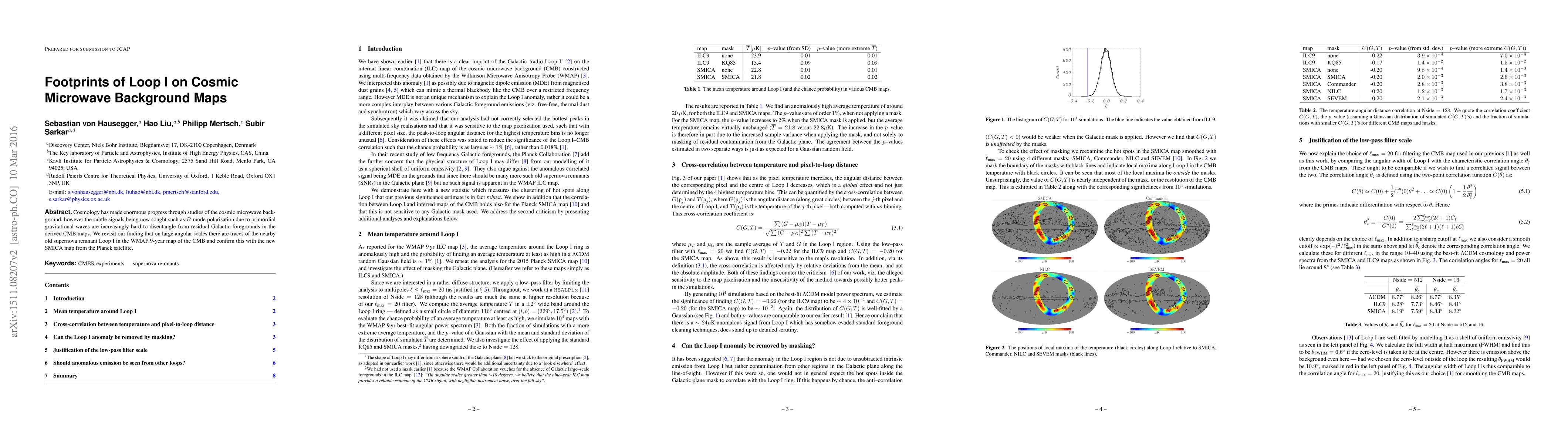 Cosmology has made enormous progress through studies of the cosmic microwave background, however the subtle signals being now sought such as B-mode polarisation due to primordial gravitational waves are increasingly hard to disentangle from residual Galactic foregrounds in the derived CMB maps. We revisit our finding that on large angular scales there are traces of the nearby old supernova remnant Loop I in the WMAP 9-year map of the CMB and confirm this with the new SMICA map from the Planck satellite.