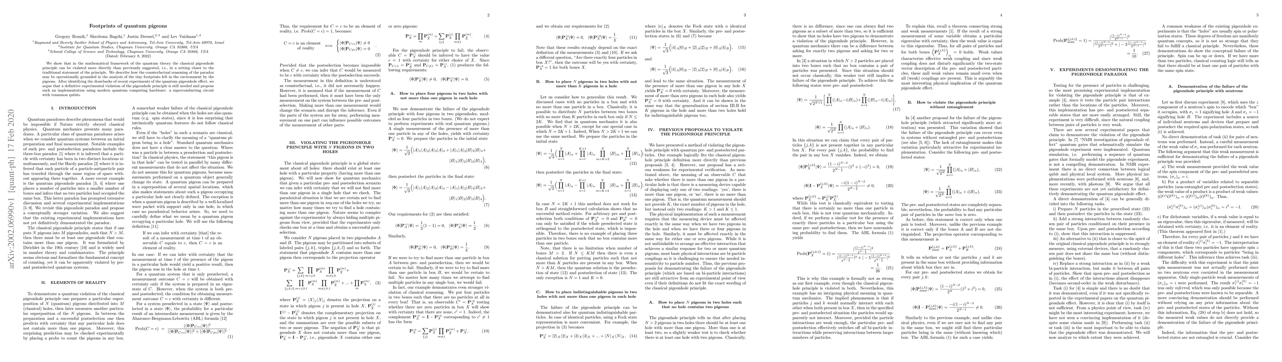 We show that in the mathematical framework of the quantum theory the classical pigeonhole principle can be violated more directly than previously suggested, i.e., in a setting closer to the traditional statement of the principle. We describe how the counterfactual reasoning of the paradox may be operationally grounded in the analysis of the tiny footprints left in the environment by the pigeons. After identifying the drawbacks of recent experiments of the quantum pigeonhole effect, we argue that a definitive experimental violation of the pigeonhole principle is still needed and propose such an implementation using modern quantum computing hardware: a superconducting circuit with transmon qubits.
