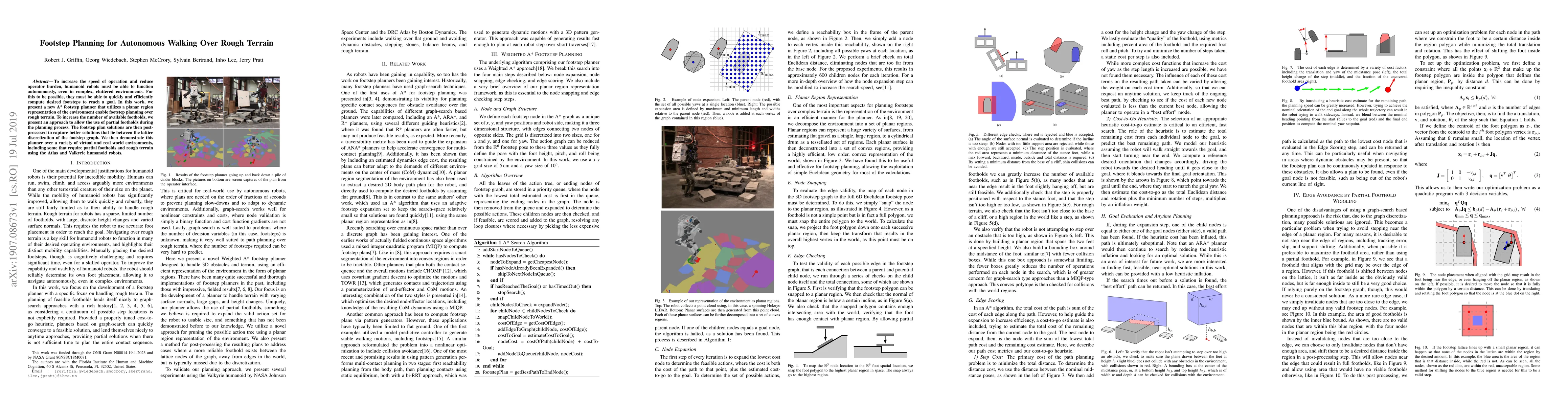 This research introduces a new A* footstep planner for humanoid robots that efficiently computes optimal footstep paths for navigating rough terrain, incorporating partial footholds and refining solutions via post-processing. The planner was tested on both virtual and real environments using Atlas and Valkyrie robots.