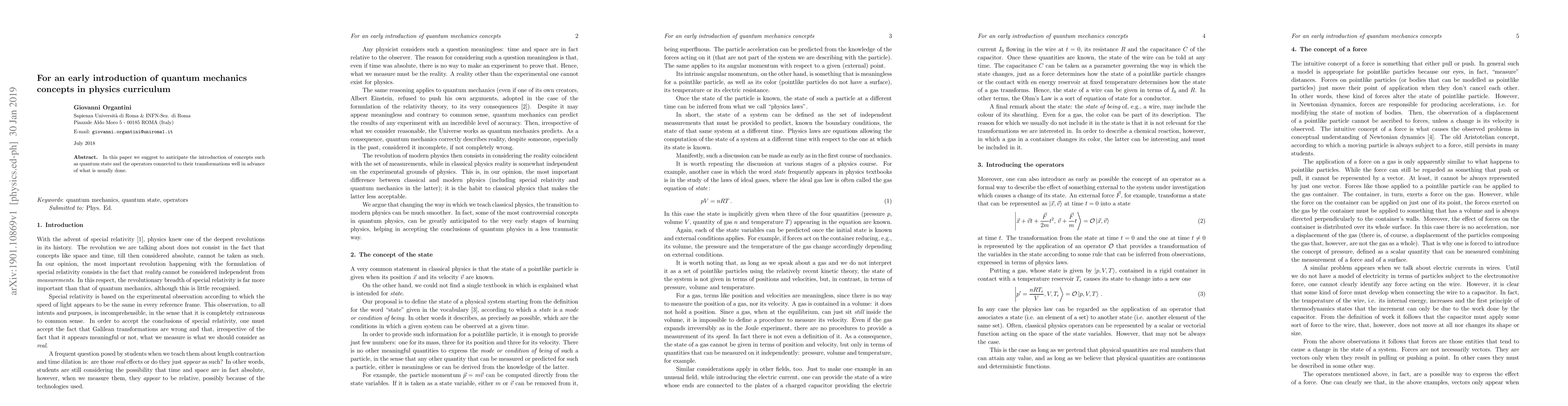 In this paper we suggest to anticipate the introduction of concepts such as quantum state and the operators connected to their transformations well in advance of what is usually done.