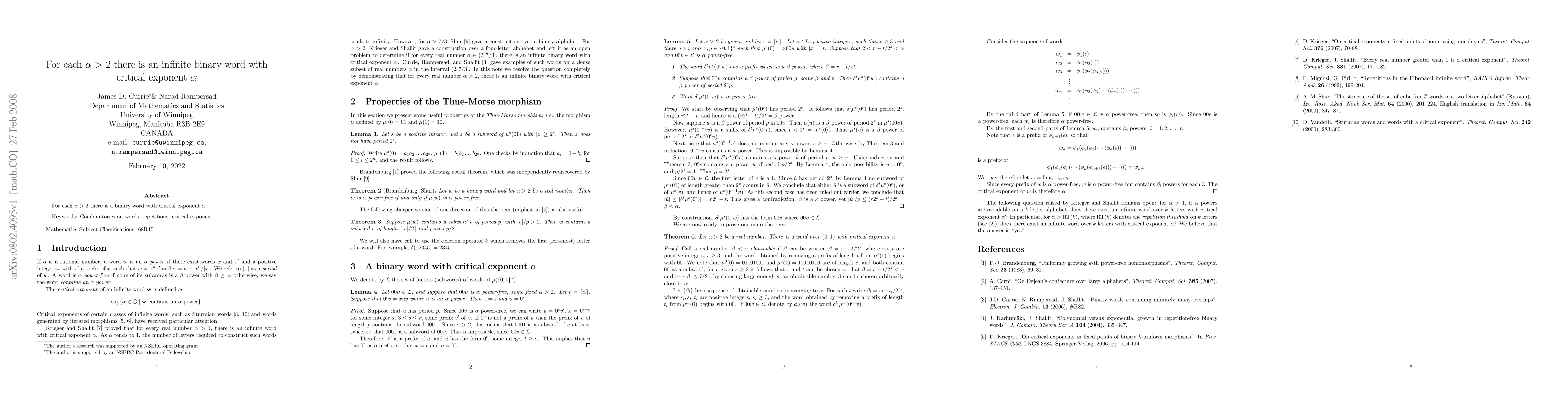 For each $\alpha > 2$ there is a binary word with critical exponent $\alpha$.