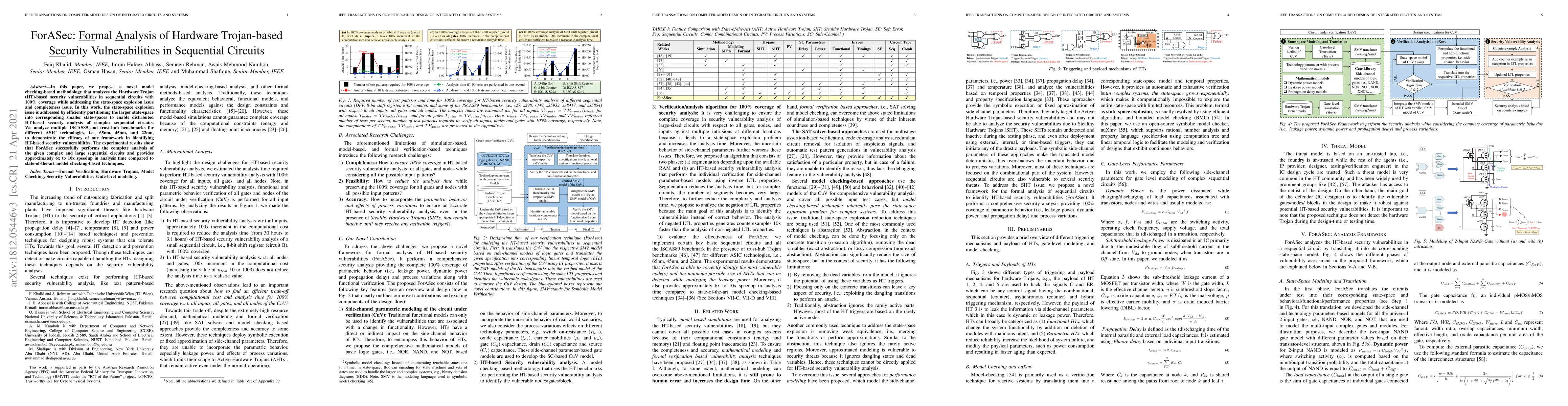 A new method called ForASec uses model checking to analyze security vulnerabilities in sequential circuits, improving analysis speed and identifying undetectable gates.