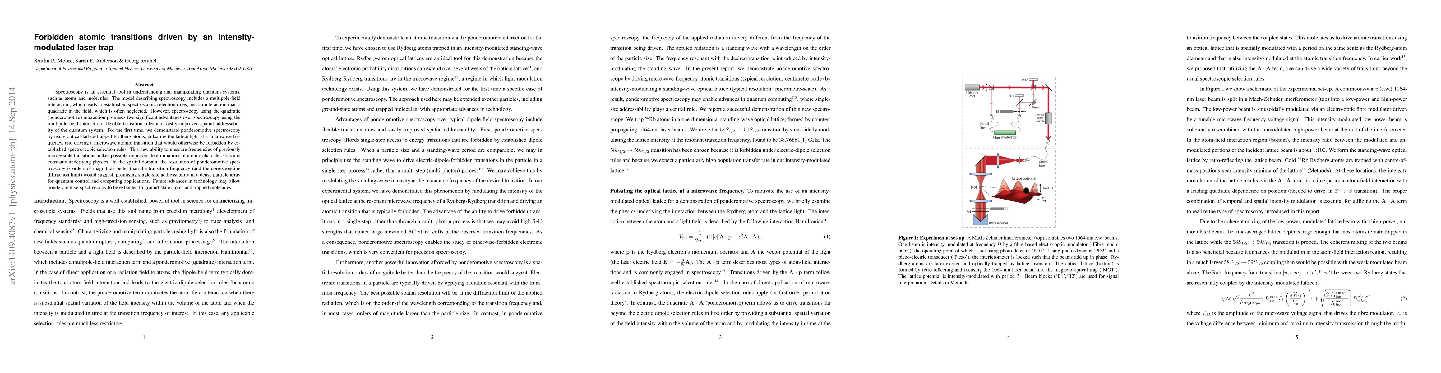 This paper demonstrates ponderomotive spectroscopy using intensity-modulated laser traps on Rydberg atoms, enabling measurement of previously forbidden atomic transitions and offering improved spatial resolution for quantum control applications. This technique promises enhanced precision in determining atomic characteristics and potential single-site addressability in dense particle arrays.