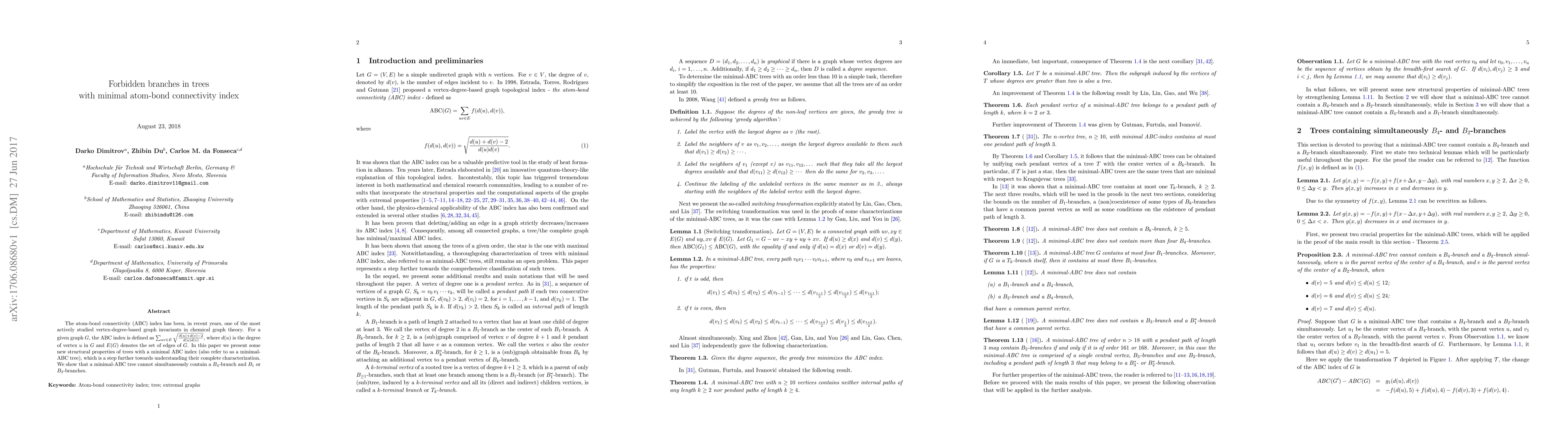 This paper explores structural properties of trees with minimal atom-bond connectivity (ABC) index, revealing that such trees cannot contain both a $B_4$-branch and $B_1$ or $B_2$-branches simultaneously, contributing to the characterization of minimal-ABC trees.