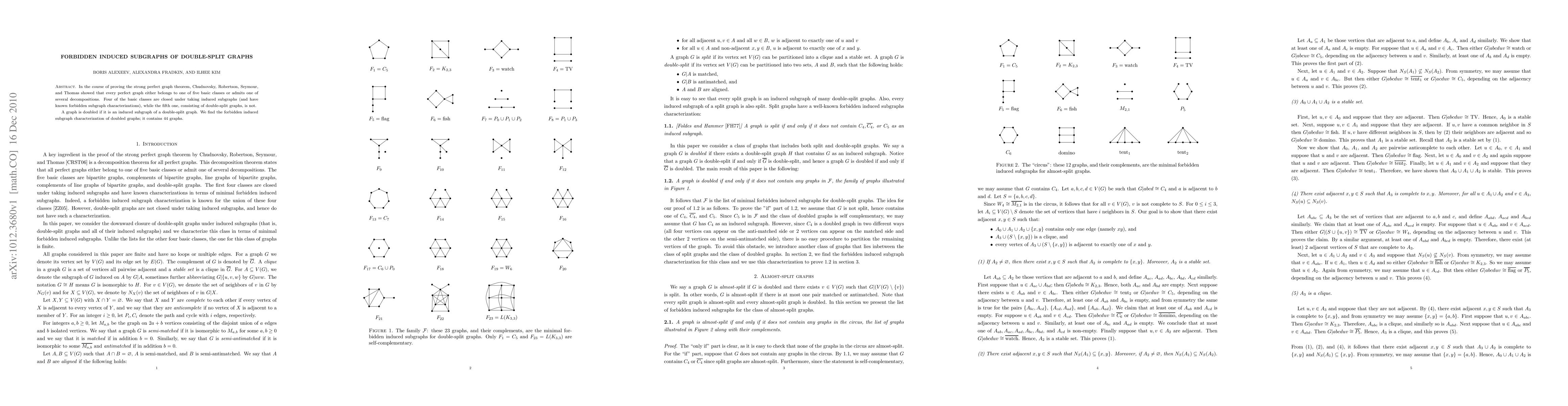 This paper identifies the 44 forbidden induced subgraphs that characterize doubled graphs, which are graphs that are induced subgraphs of double-split graphs, contributing to the understanding of the fifth basic class in the strong perfect graph theorem.