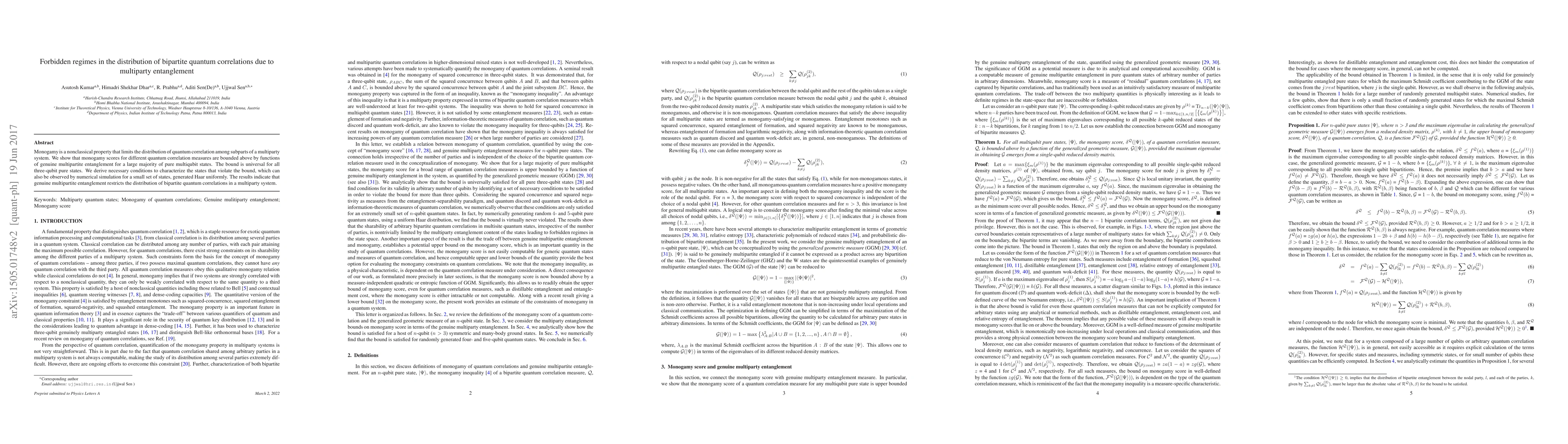 This paper demonstrates that monogamy properties of quantum correlations are constrained by genuine multipartite entanglement, showing universal bounds for three-qubit systems. It identifies conditions for states violating these bounds, providing insights into how multiparty entanglement limits bipartite quantum correlations.