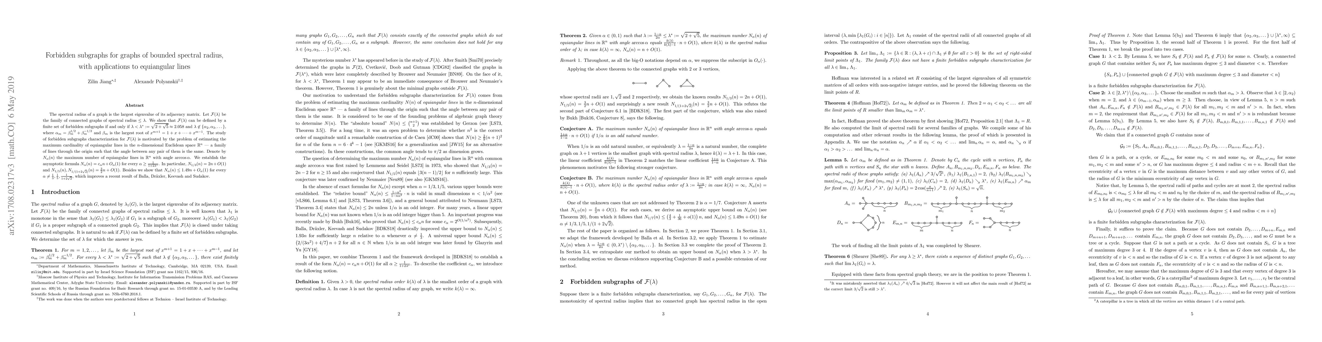 This paper explores the characterization of connected graphs with bounded spectral radius by a finite set of forbidden subgraphs, establishing that such a characterization exists if and only if the spectral radius is less than a specific value $\lambda^*$. It also provides an asymptotic formula for the maximum number of equiangular lines in $n$-dimensional space, improving previous results.