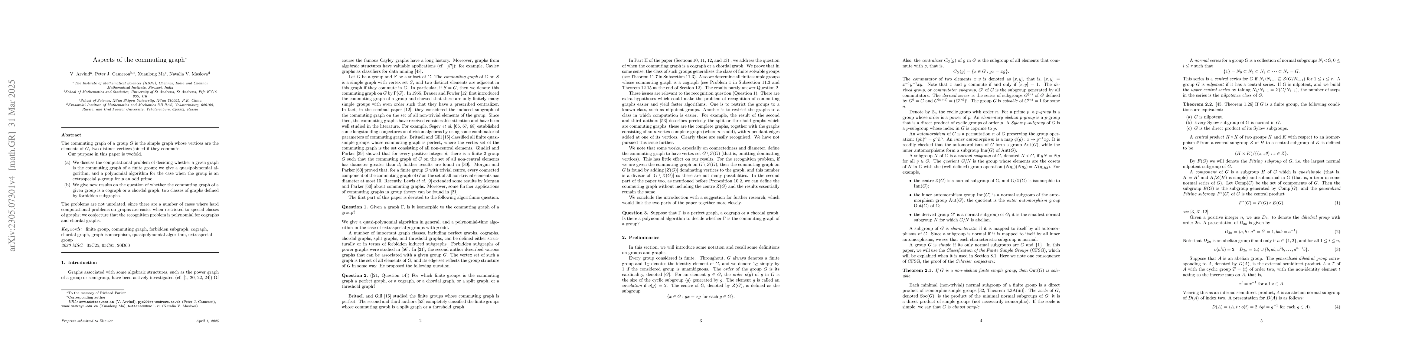 Given a finite group $G$, the commuting graph of $G$ is the simple graph whose vertex set is $G$, and two distinct vertices are adjacent if they commute. In this paper, we classify all finite groups whose commuting graph is split and threshold. We also investigate the structure of a group whose commuting graph is either a cograph or a chordal graph, and determine all non-abelian finite simple groups whose commuting graph is a cograph. The results partly answer a question by Peter J. Cameron established in 2022 in his survey paper on graphs defined on groups.