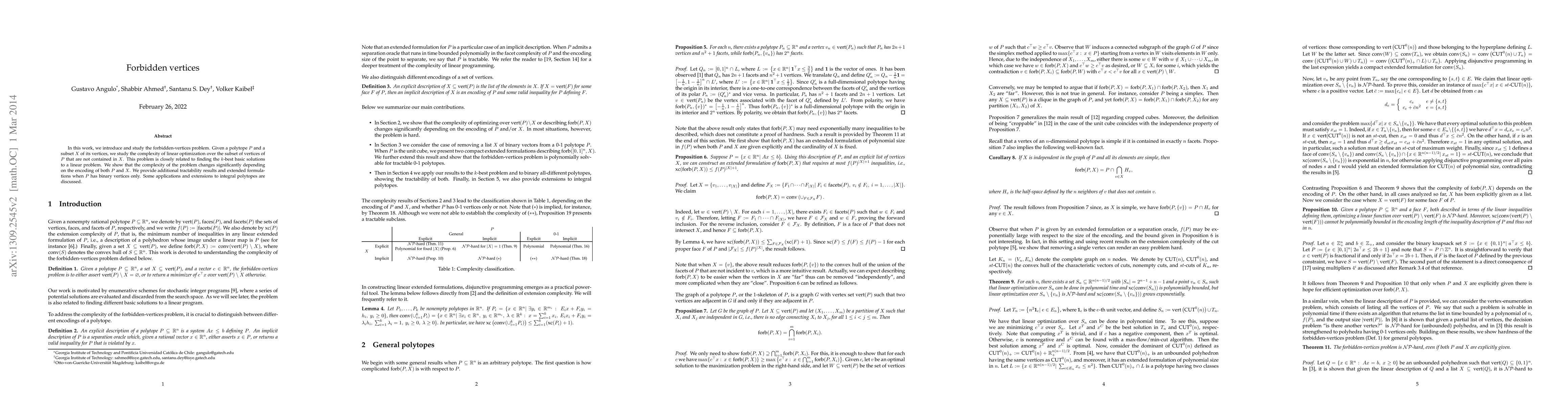 This research paper introduces the forbidden-vertices problem, exploring its complexity in relation to linear optimization over a subset of vertices not contained within a given polytope P, with varying results depending on the encoding of P and X.