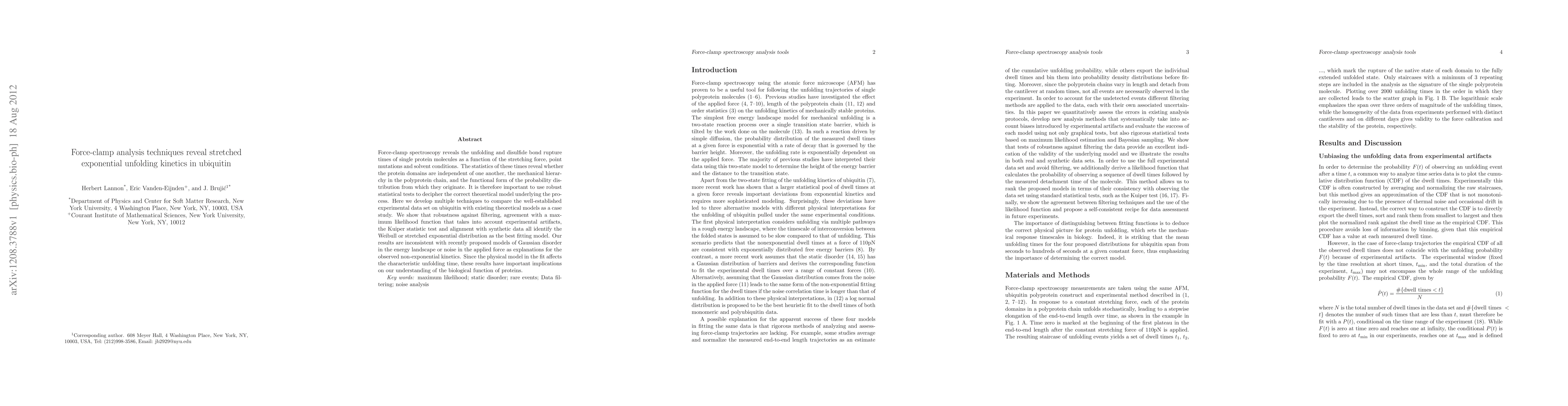 This paper develops force-clamp spectroscopy techniques to analyze ubiquitin unfolding kinetics, revealing that stretched exponential (Weibull) distributions best fit the experimental data, challenging Gaussian disorder models. The findings underscore the importance of the physical model in understanding protein function.