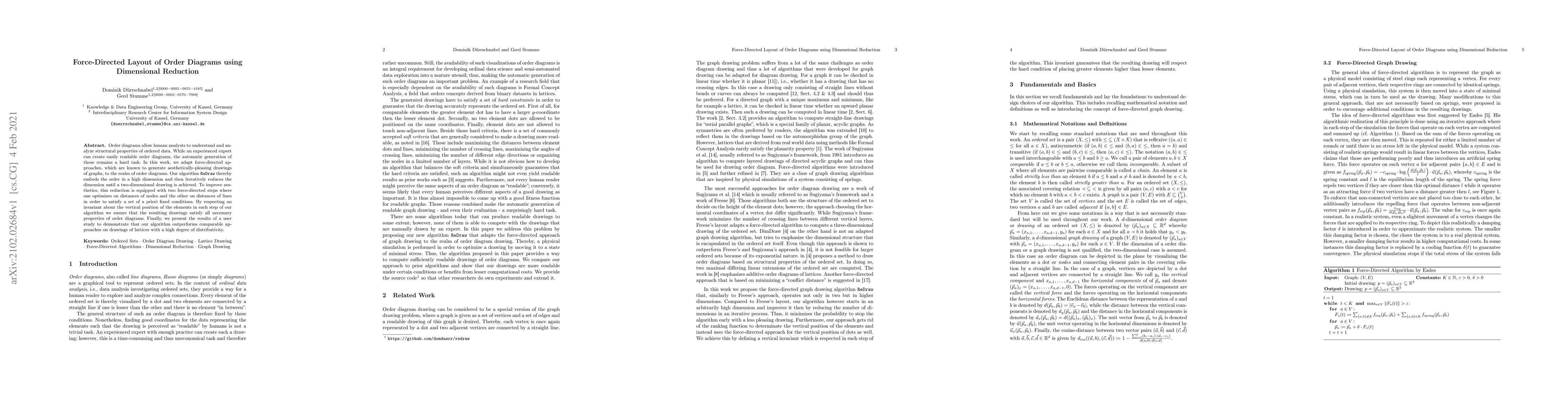 The paper introduces ReDraw, a force-directed algorithm for generating order diagrams by first embedding the order in high dimensions and then iteratively reducing the dimension until a 2D drawing is achieved. It incorporates two force-directed steps to optimize node and line distances, ensuring all necessary properties of order diagrams are satisfied.