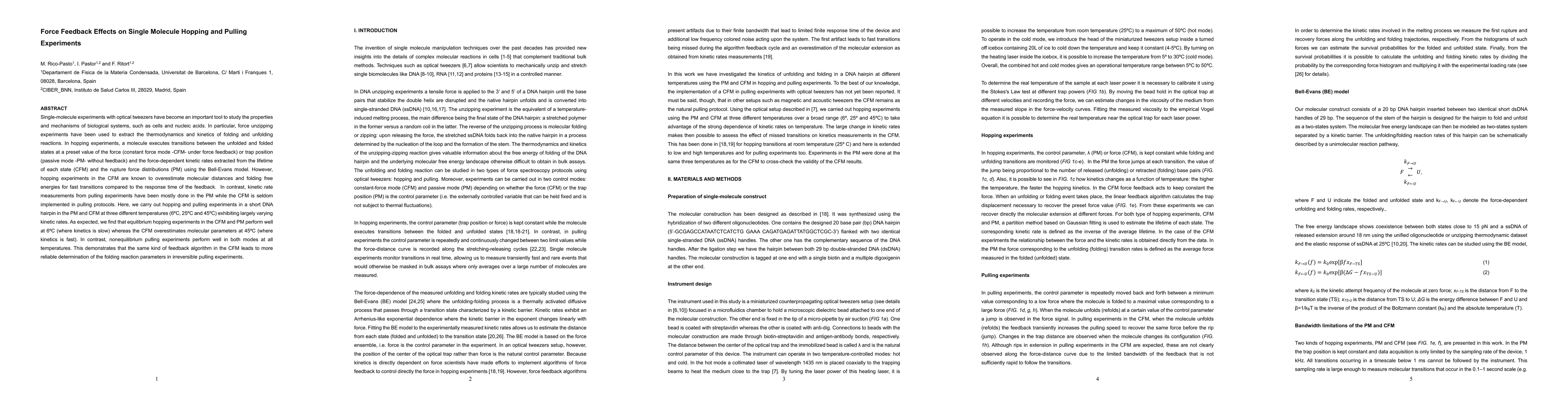 This paper investigates the effects of force feedback in single-molecule experiments using optical tweezers, comparing constant force mode (CFM) and passive mode (PM) for hopping and pulling experiments on DNA hairpins. It finds that CFM overestimates molecular parameters at high temperatures due to fast kinetics, while PM and CFM both work well for pulling experiments at all temperatures.
