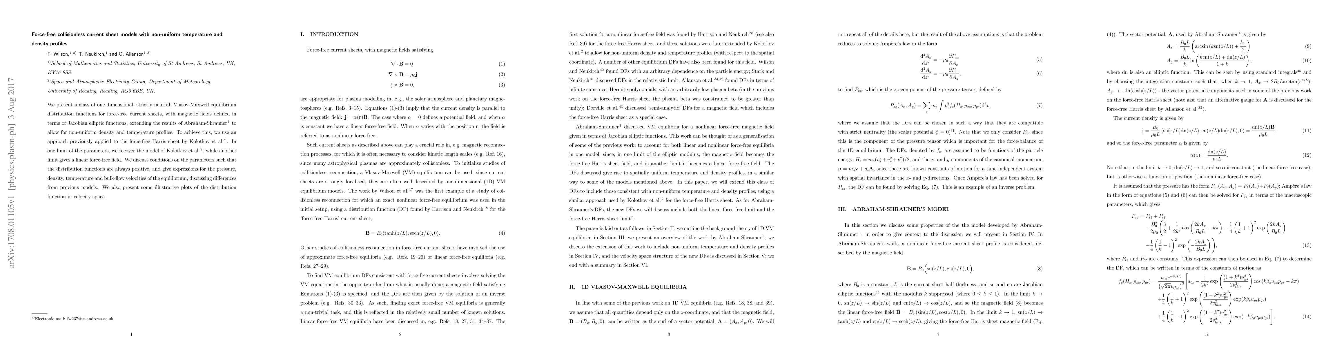 This paper develops a new class of force-free current sheet models using Vlasov-Maxwell equilibrium, allowing for non-uniform density and temperature profiles through Jacobian elliptic functions. It extends previous models to include these variations and discusses the conditions ensuring positive distribution functions.