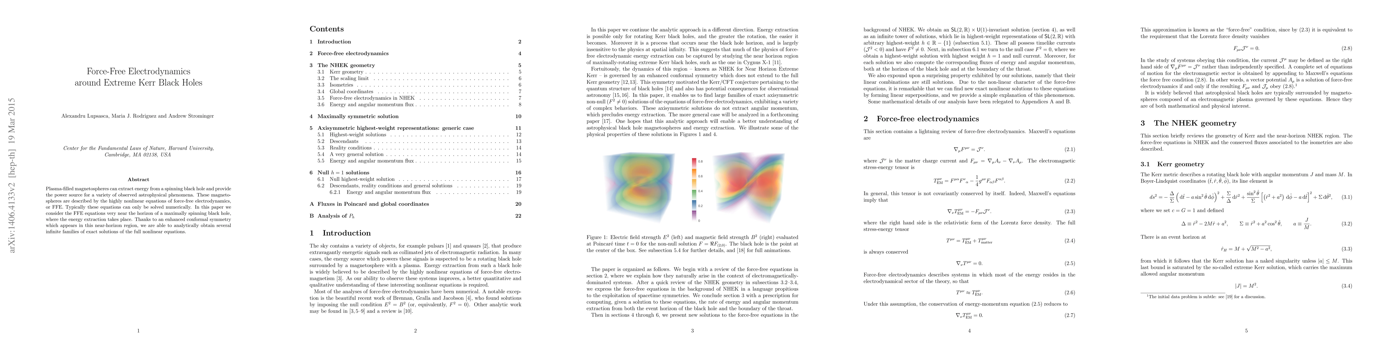 Plasma-filled magnetospheres can extract energy from a spinning black hole and provide the power source for a variety of observed astrophysical phenomena. These magnetospheres are described by the highly nonlinear equations of force-free electrodynamics, or FFE. Typically these equations can only be solved numerically. In this paper we consider the FFE equations very near the horizon of a maximally spinning black hole, where the energy extraction takes place. Thanks to an enhanced conformal symmetry which appears in this near-horizon region, we are able to analytically obtain several infinite families of exact solutions of the full nonlinear equations.