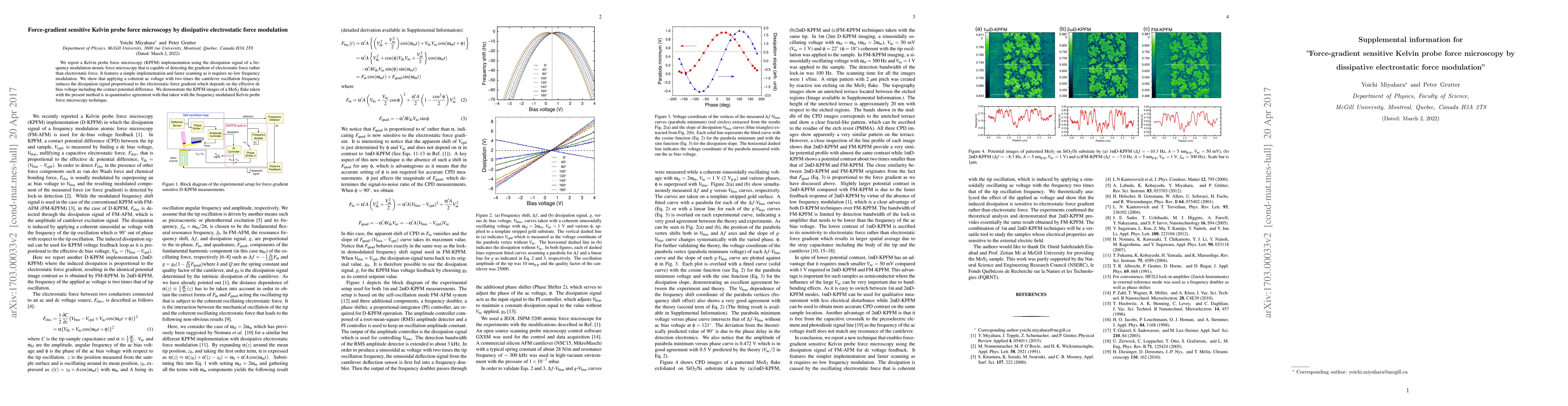 This research presents a novel Kelvin probe force microscopy (KPFM) method using dissipative electrostatic force modulation, which detects the gradient of electrostatic force instead of the force itself, enabling faster scanning and simpler implementation. The method employs a coherent ac voltage at twice the cantilever oscillation frequency to induce a dissipation signal proportional to the electrostatic force gradient, providing quantitative agreement with traditional frequency-modulated KPFM techniques as demonstrated on a MoS$_2$ flake.