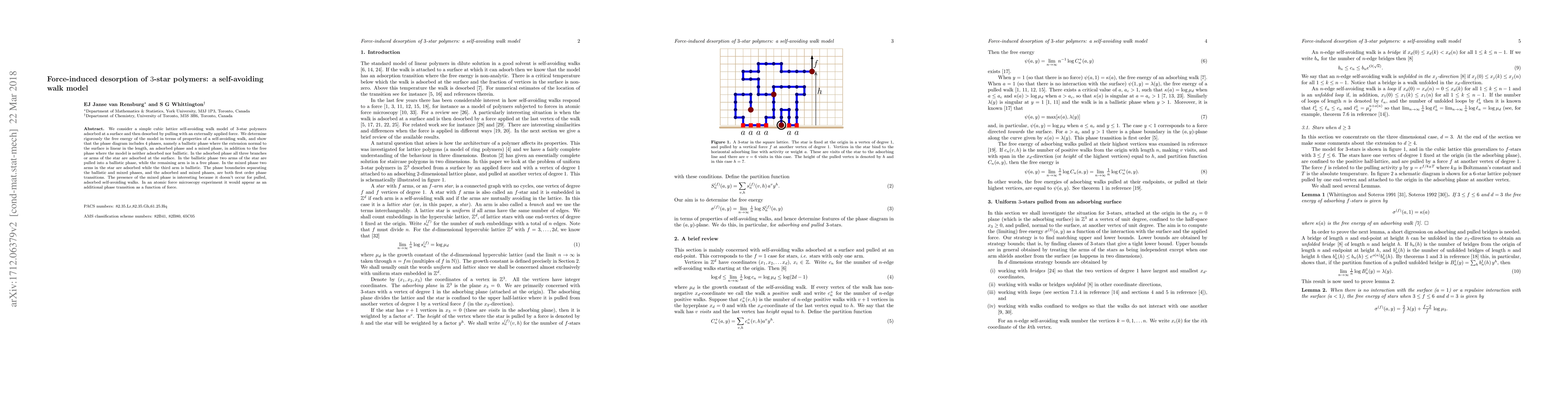 We consider a simple cubic lattice self-avoiding walk model of 3-star polymers adsorbed at a surface and then desorbed by pulling with an externally applied force. We determine rigorously the free energy of the model in terms of properties of a self-avoiding walk, and show that the phase diagram includes 4 phases, namely a ballistic phase where the extension normal to the surface is linear in the length, an adsorbed phase and a mixed phase, in addition to the free phase where the model is neither adsorbed nor ballistic. In the adsorbed phase all three branches or arms of the star are adsorbed at the surface. In the ballistic phase two arms of the star are pulled into a ballistic phase, while the remaining arm is in a free phase. In the mixed phase two arms in the star are adsorbed while the third arm is ballistic. The phase boundaries separating the ballistic and mixed phases, and the adsorbed and mixed phases, are both first order phase transitions. The presence of the mixed phase is interesting because it doesn't occur for pulled, adsorbed self-avoiding walks. In an atomic force microscopy experiment it would appear as an additional phase transition as a function of force.